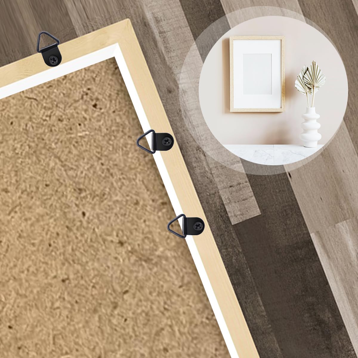 Packaging includes: 100pcs D-Ring Triangle Hooks + 100pcs Screws