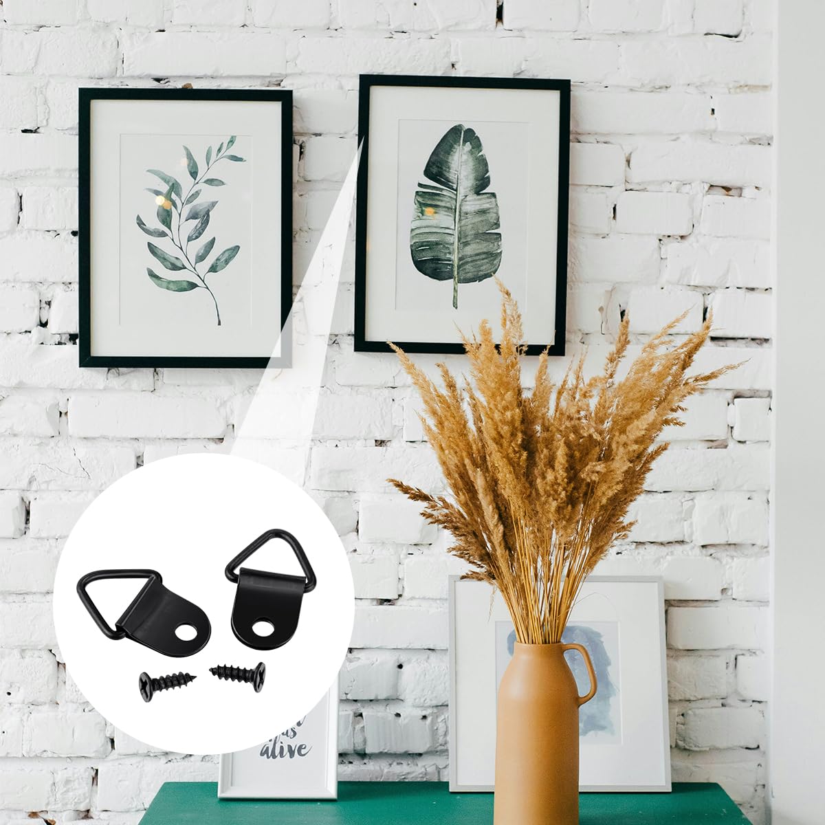 100 Pack Steel Picture Hangers with 100pcs 8mm Screws, Small Triangle Ring, Light Duty D Rings for Clock, Decoration, Mirror, Paintings, Artwork Picture Frame (Black)