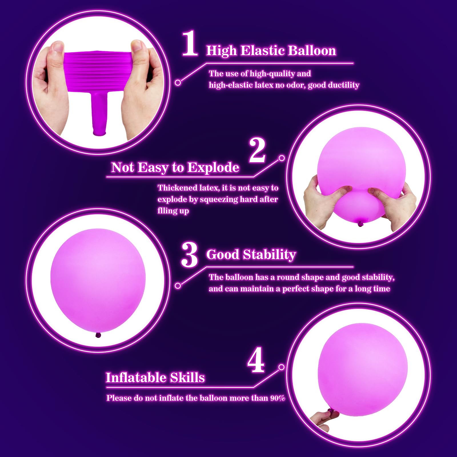 - ★【Please note】:Neon colored balloons will not glow in the dark without a UV black light response. If you have any questions, please feel free to contact us.