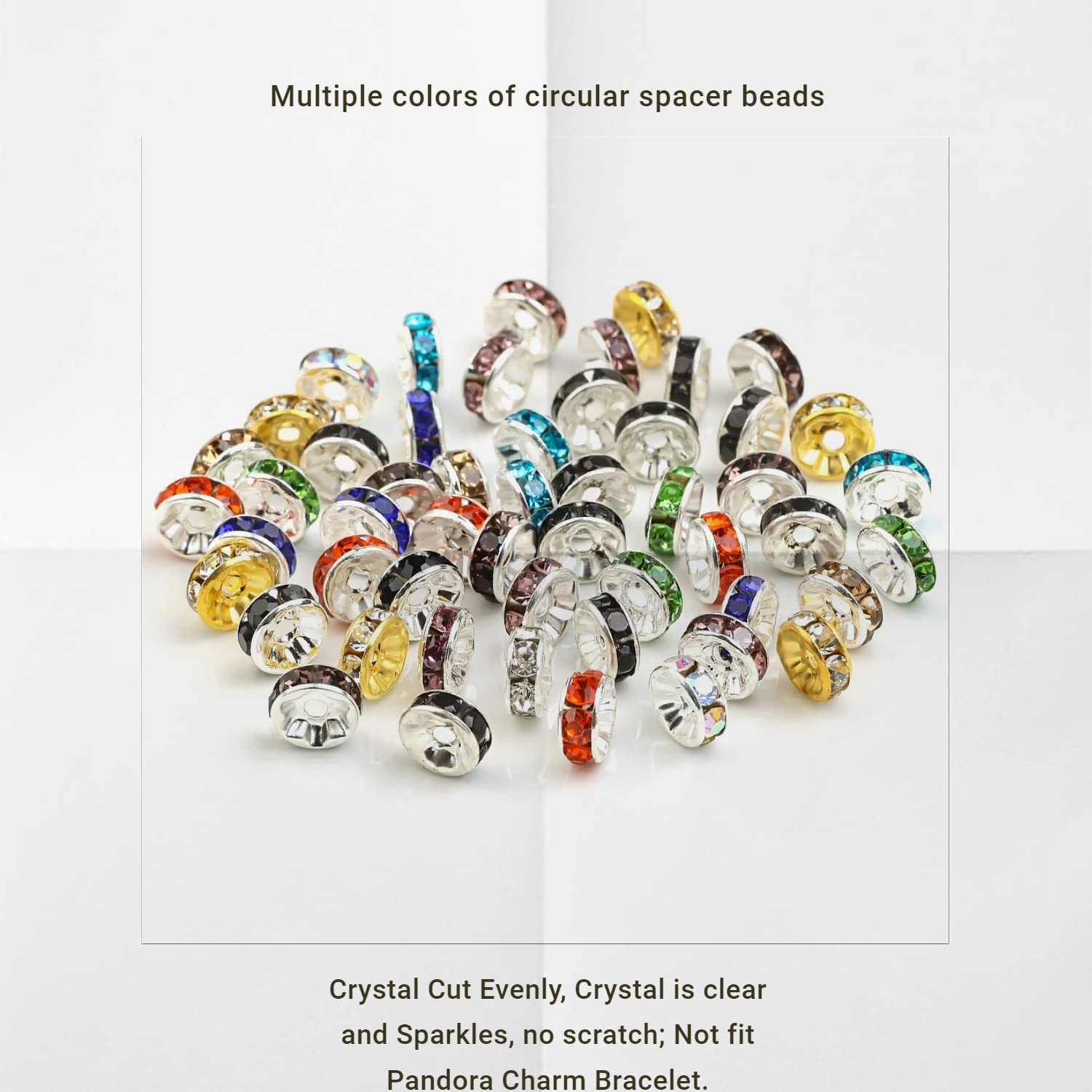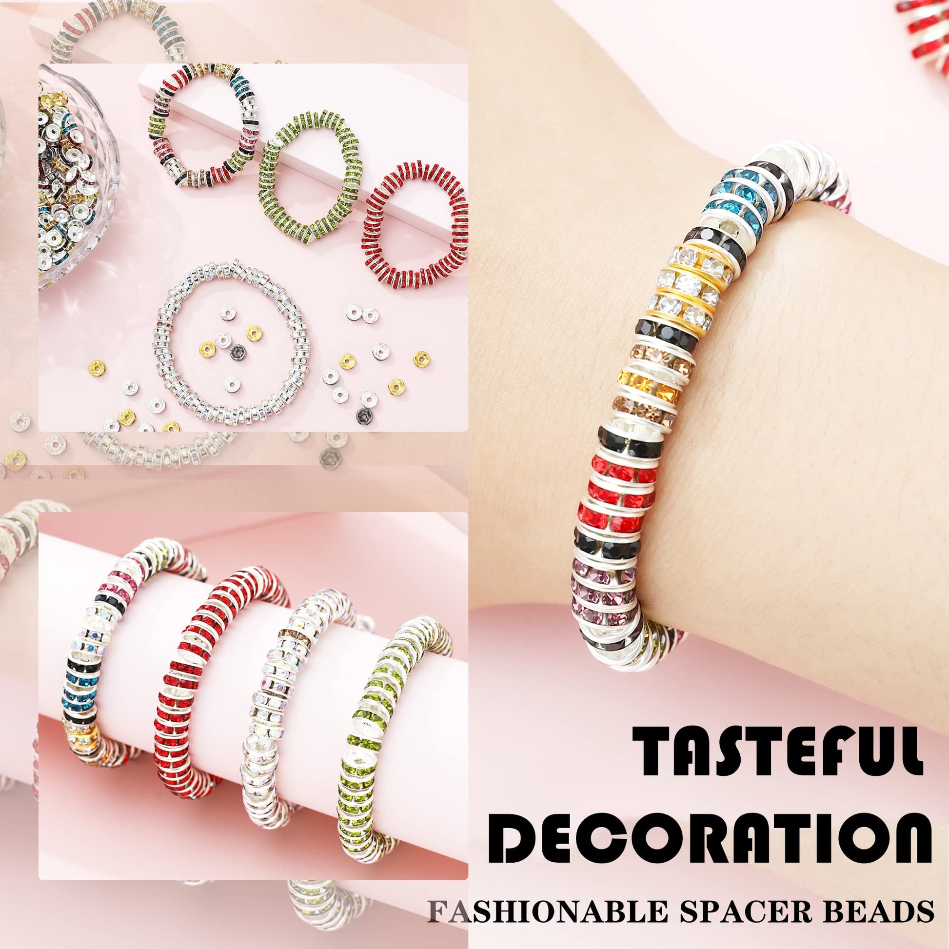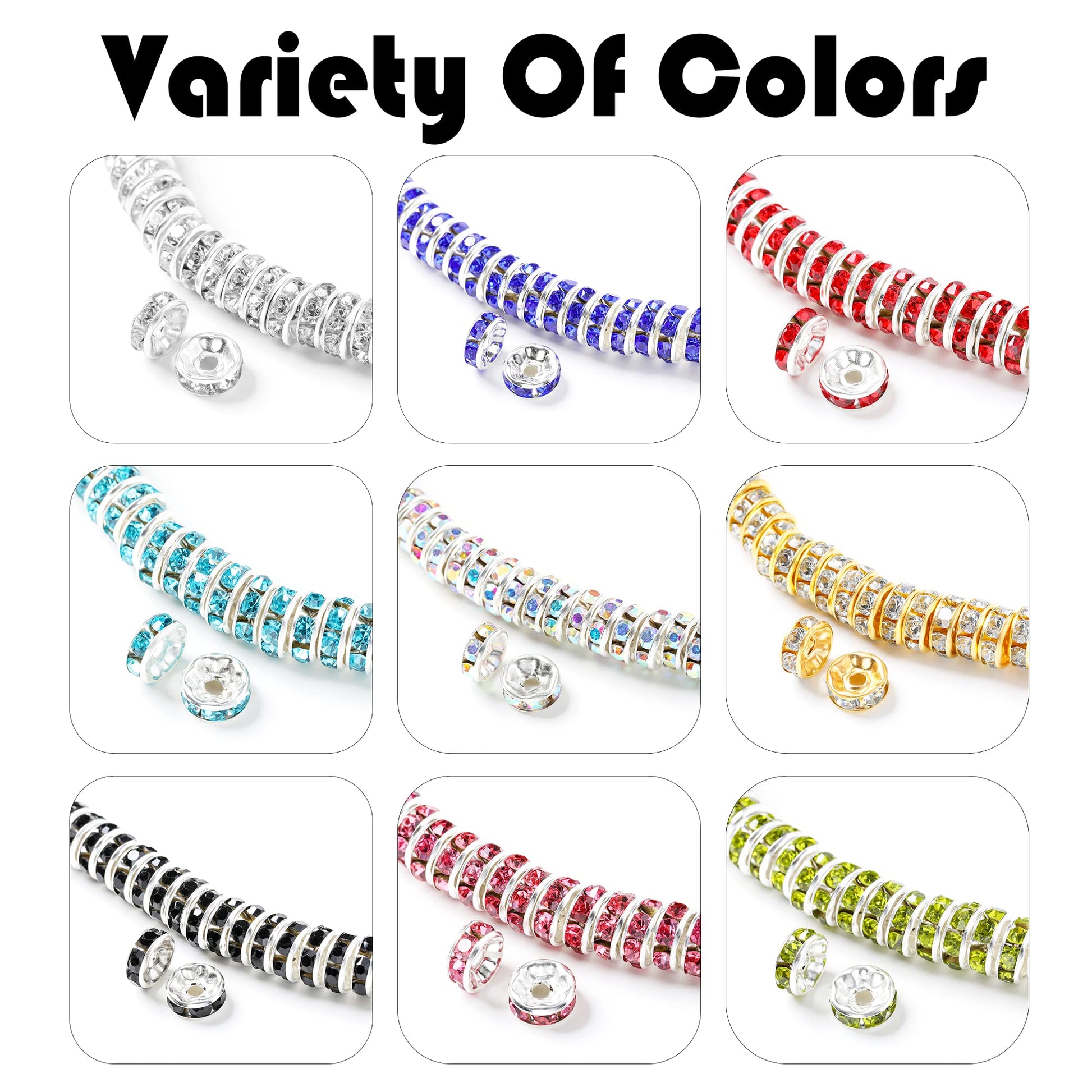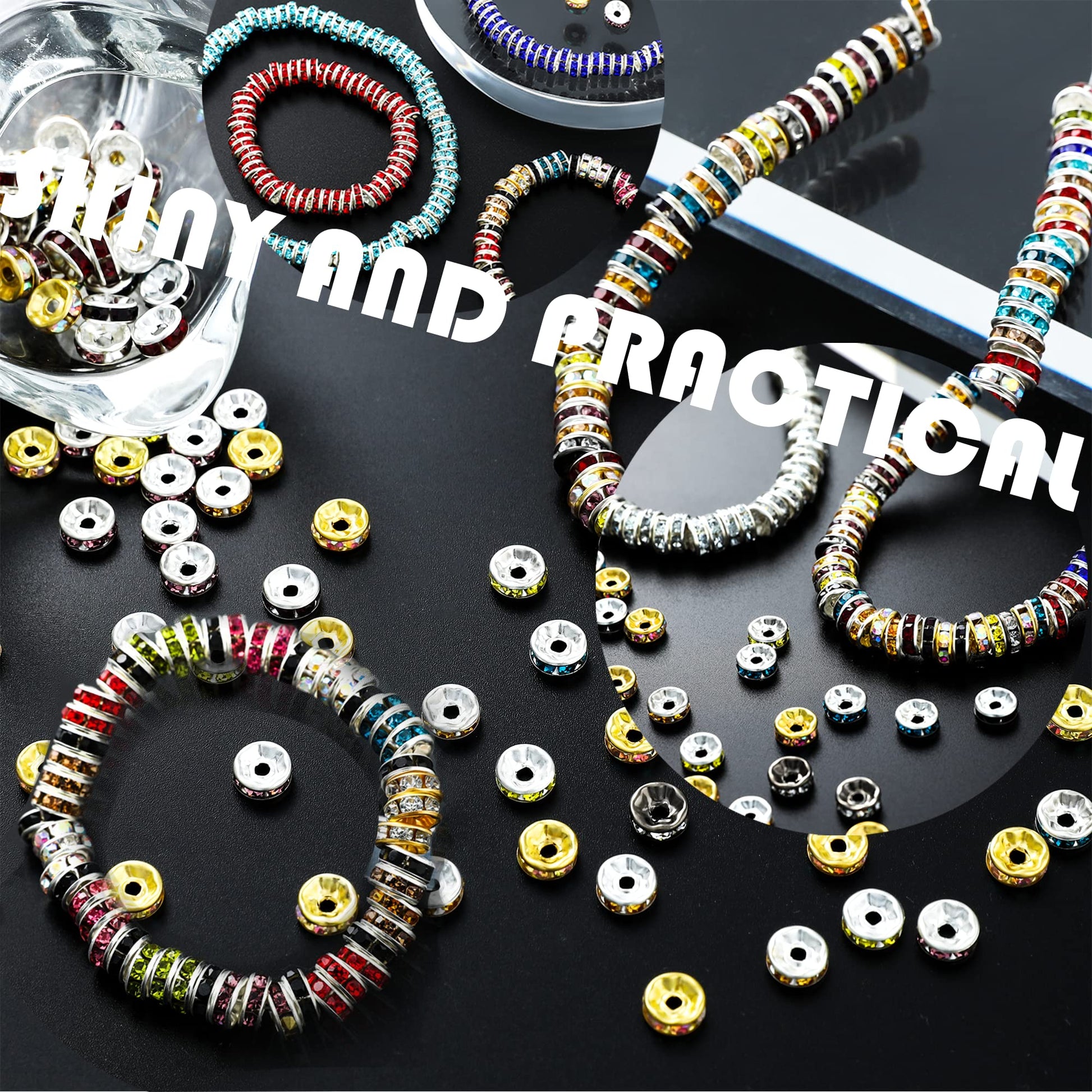 1080Pcs 8mm Rhinestone Spacer Beads, Crystal Glass Beads, Spacer Beads for Jewelry Making, Beads for Jewelry Making Necklaces, Bracelet Pendants, 9 Colors