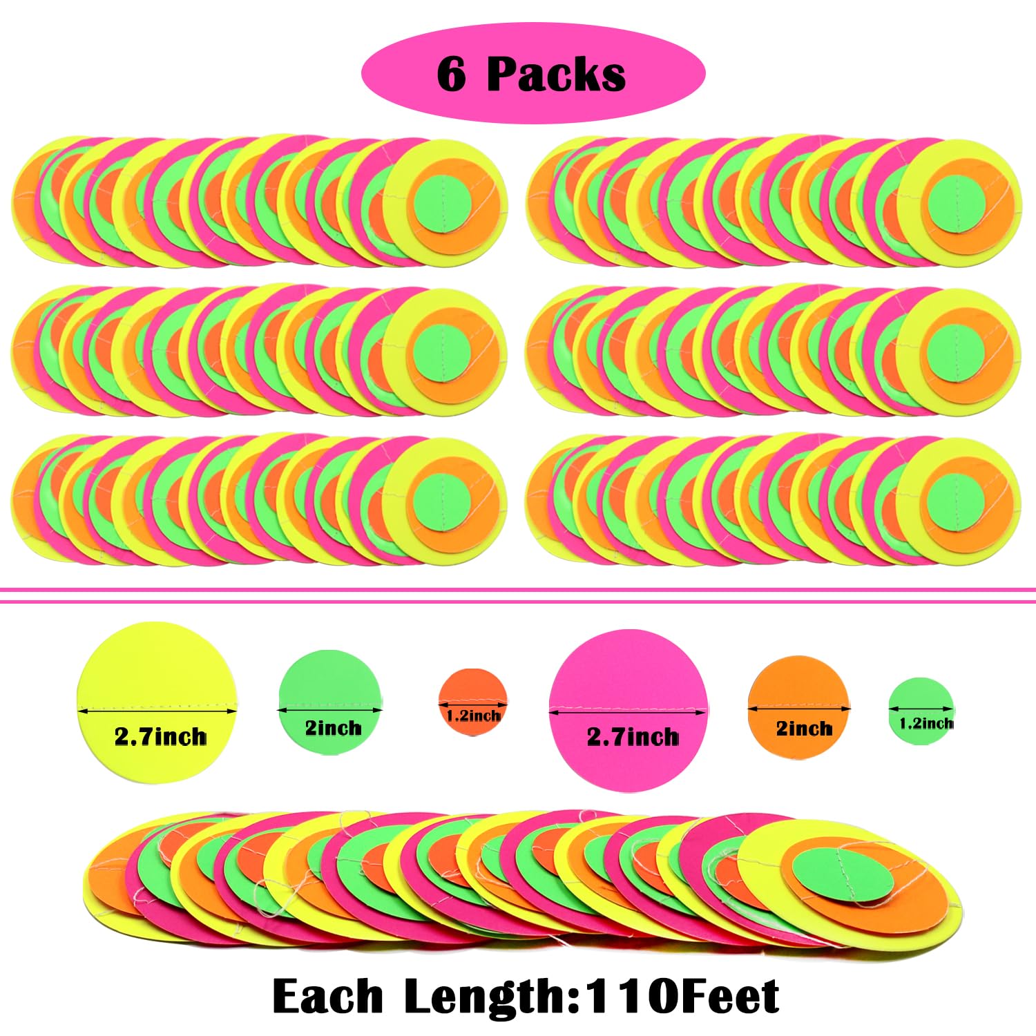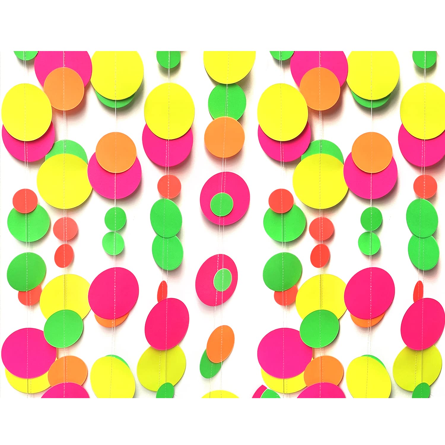 110feet UV Round Dot Paper Neon Garland Neon Streamers Black Light Neon Decorations for Dark Glow Party UV Reactive Neon Party Favors Glow in The Dark Party Supplies Wedding Birthday Banner Decoration