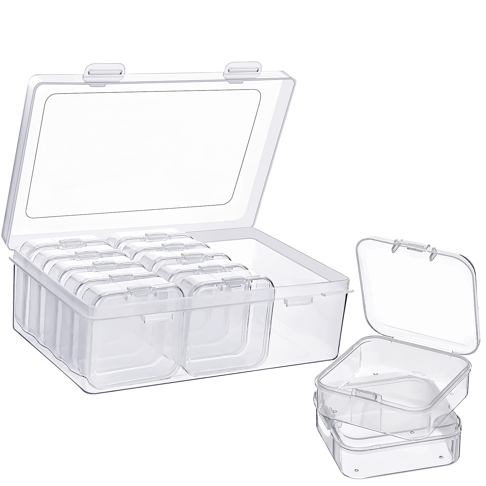 12 Pieces Small Clear Plastic Beads Storage Container and Organizer Transparent Boxes with Hinged Lid for Storage of Small Items, Jewelry, Diamonds, DIY Art Craft Accessory (2.12 x 2.12 x 0.79 inch)