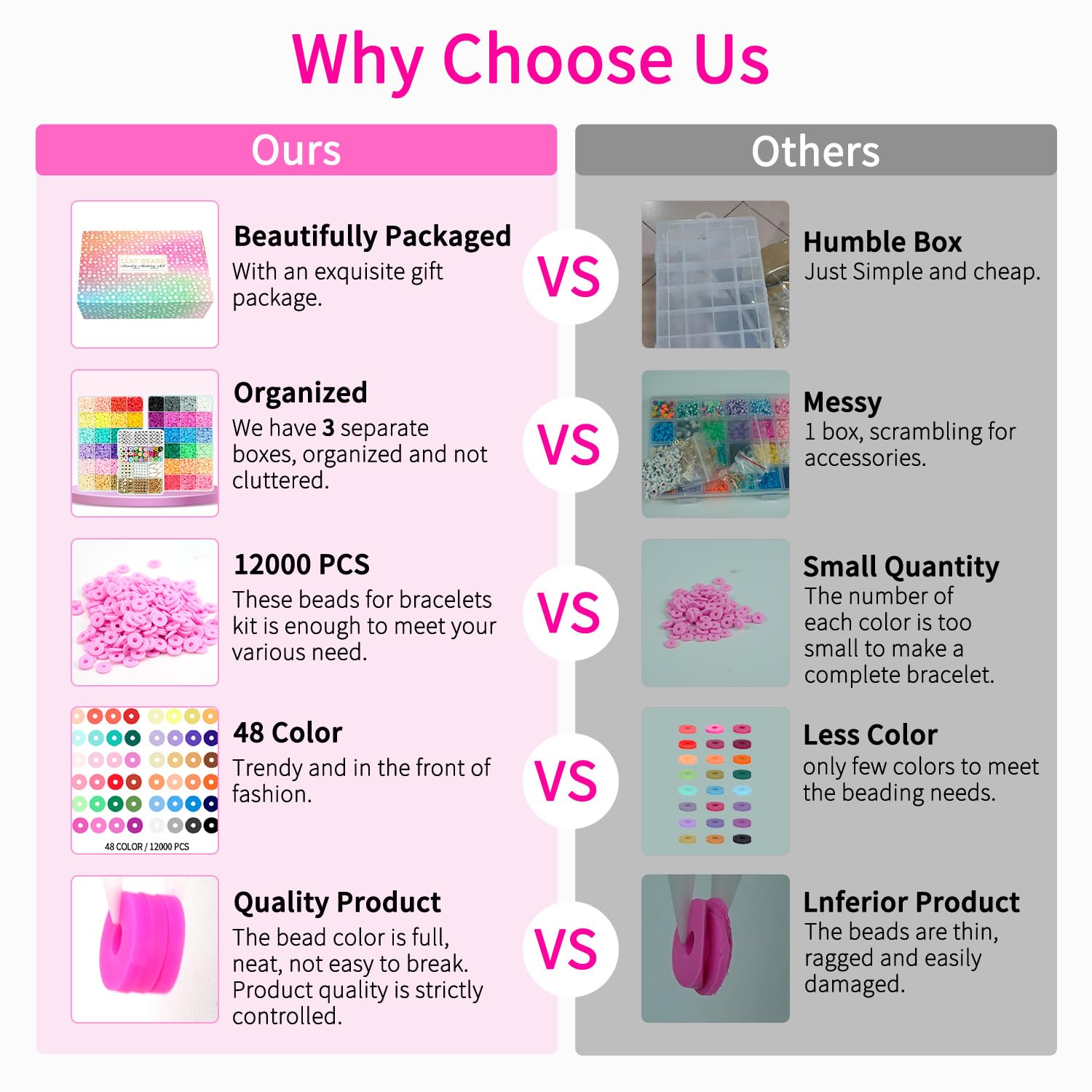 12000 Pcs Clay Beads for Bracelet Making, Paodey 48 Colors 3 Boxes Polymer Clay Beads Spacer Beads Kit, Jewelry Making Kit with Preppy Heishi Beads and Elastic Strings, Crafts Gift for Girls Ages 6-12