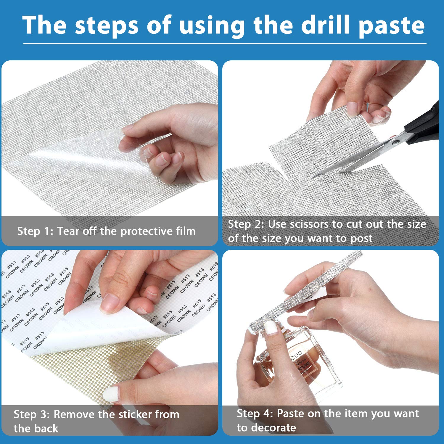 - Easy to use: according to your needs can be cut out any shape you want, cut the appropriate size, remove the bling gem rhinestone sticker from the back, place it on the smooth surface you want to decorate, and press ( don't go near the water for 48 hours after pasting), convenient for your hand-made crafts
