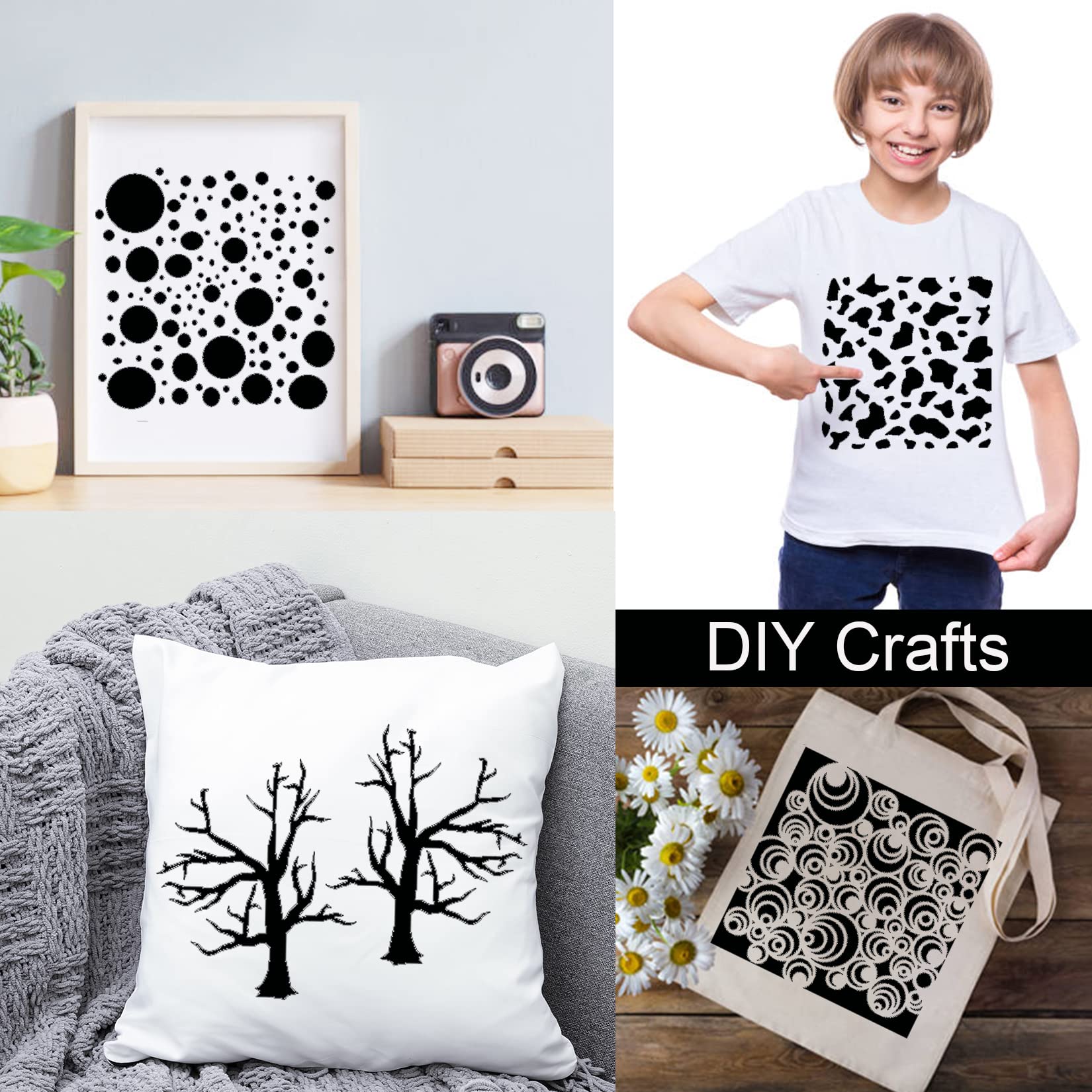 - Applicable occasions: These crafts stencils are suitable for any DIY crafts projects and can be applied to most flat surfaces, including wood, metal, paper, fabrics, canvas, wall, floor, furniture, glass, and more. With these stencils, you can easily paint or decor on any smooth surface using acrylic paint, chalk, air spray, ballpoint pen, and brush