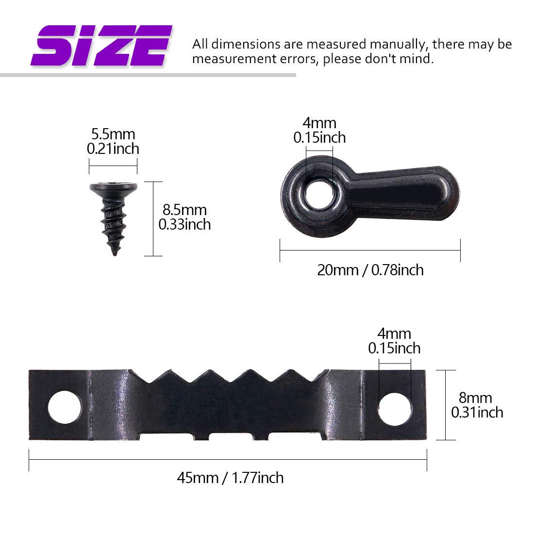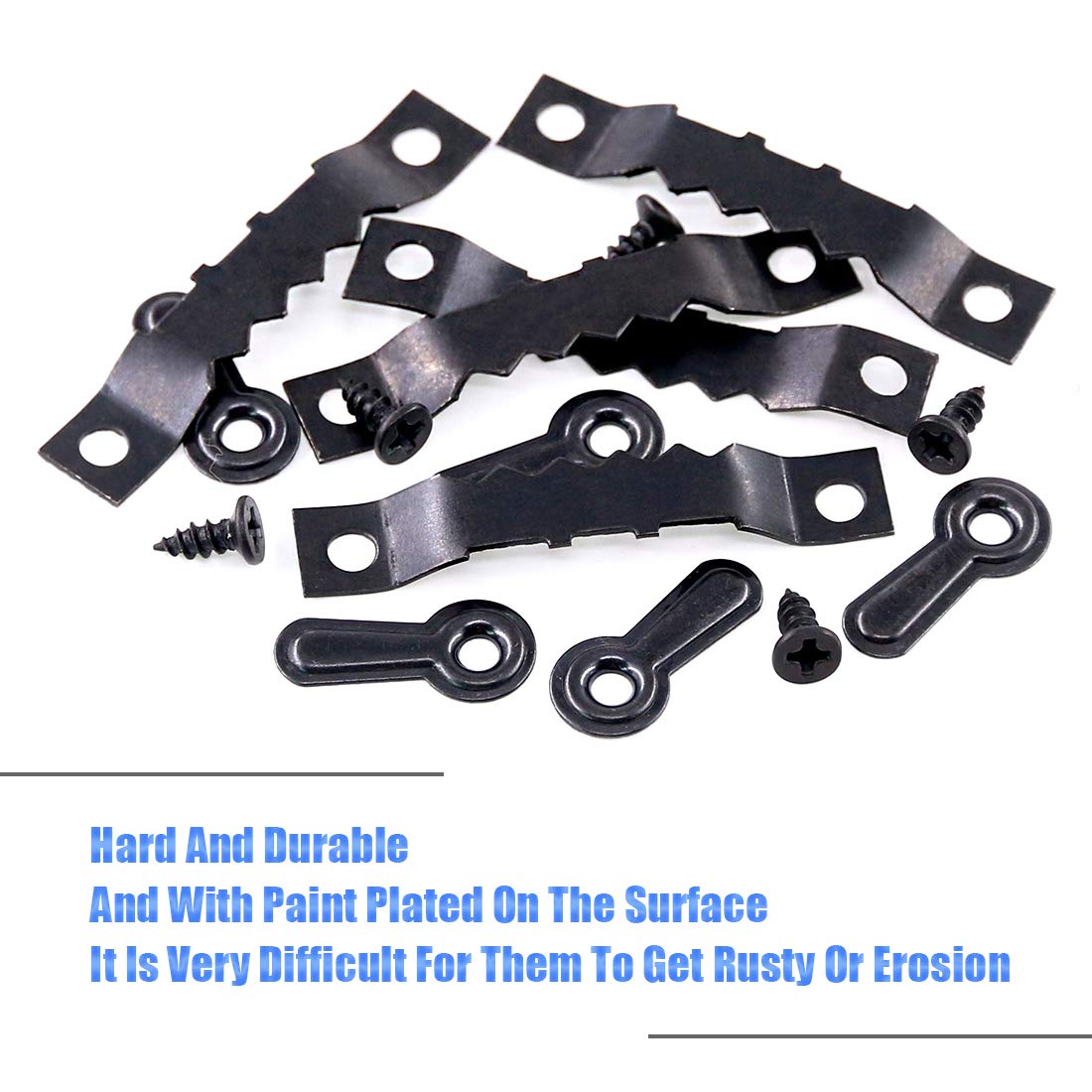 160Pcs Picture Hangers Kit, Including 80Pcs Black Sawtooth Picture Frame Hanging Hangers Double Hole and 80Pcs Photo Frame Turn Button with Screws Perfect for Home Decoration - Black
