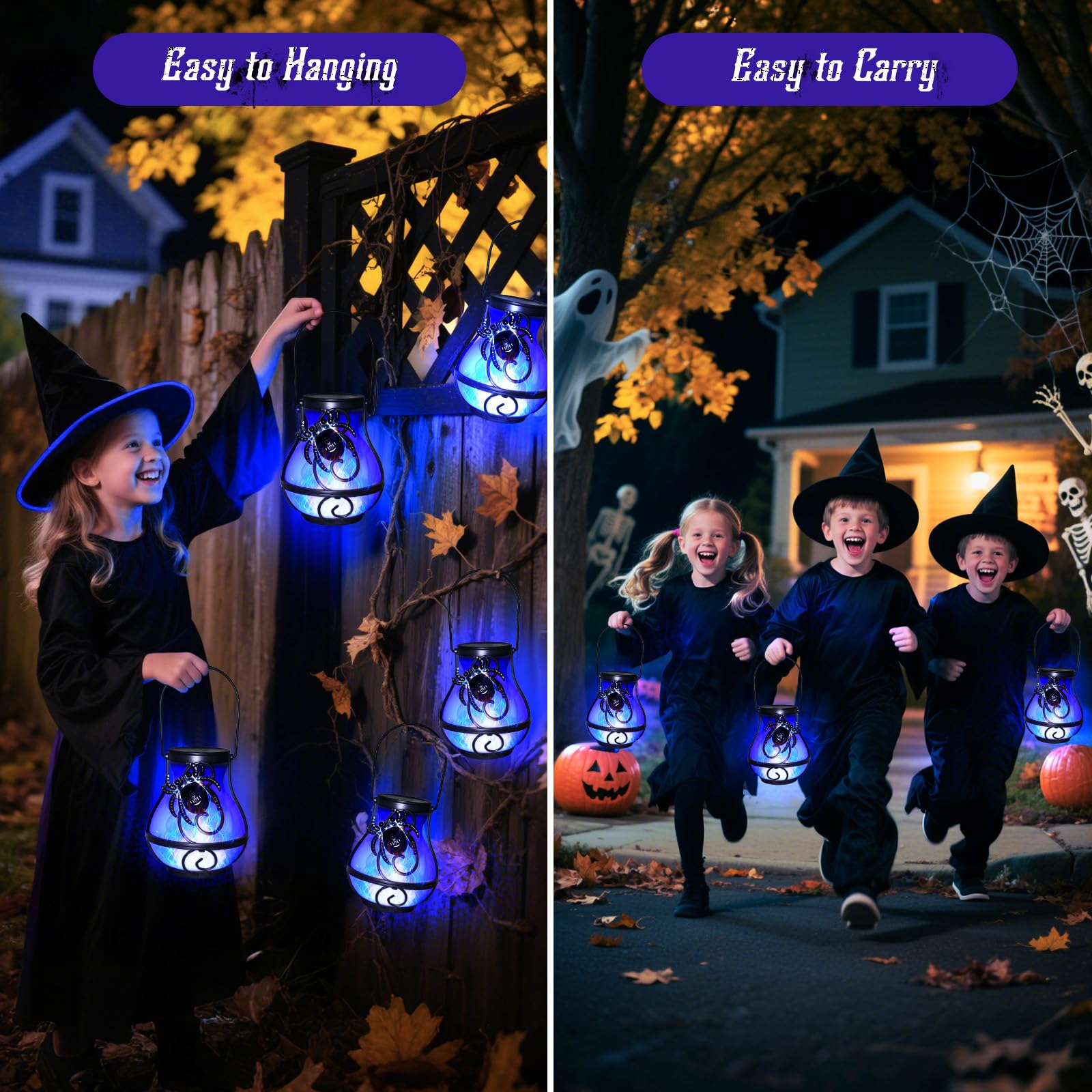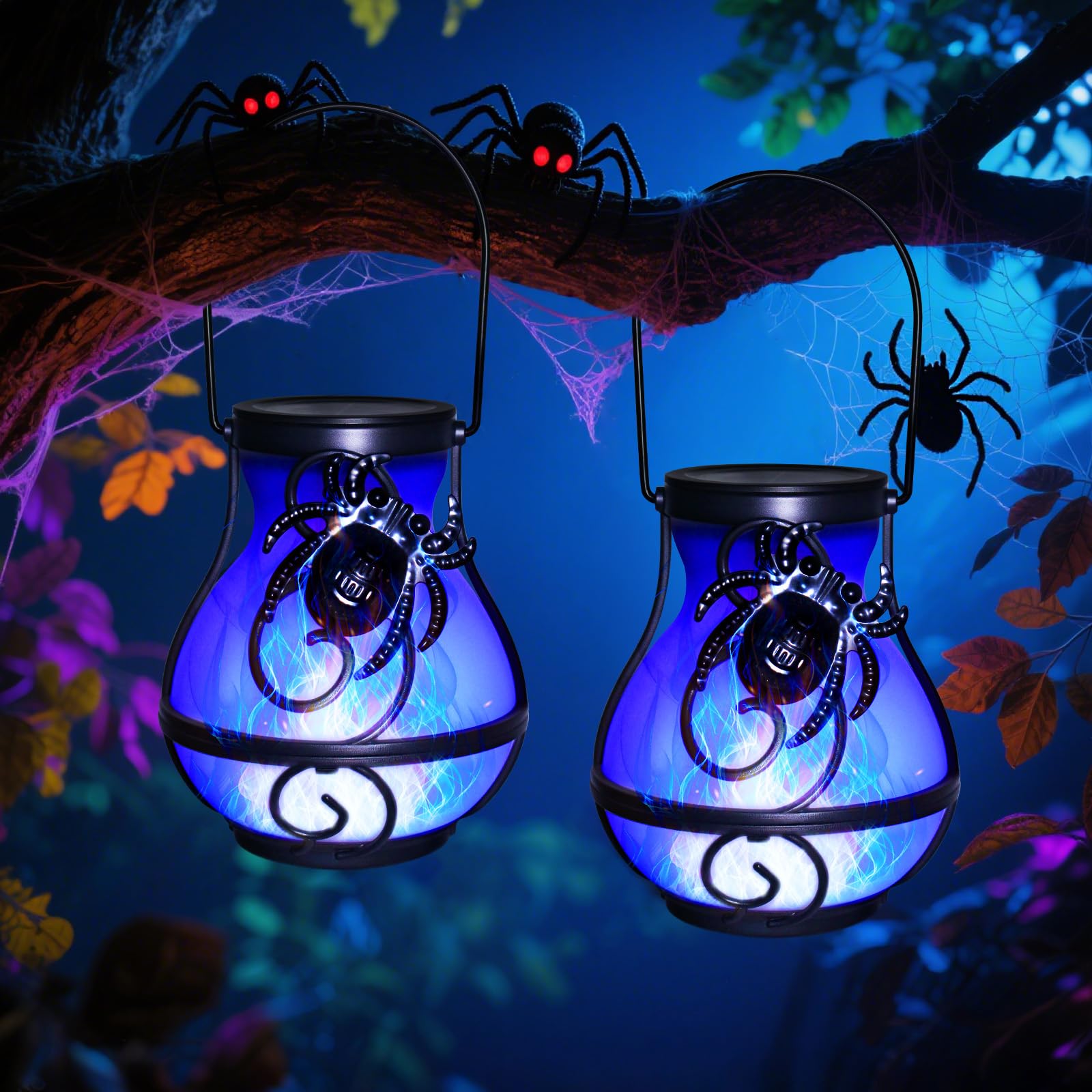 2 Pack Halloween Lights Outdoor Spider Hanging Solar Lantern Flickering Flame Lights Garden Patio Porch Halloween Party Decoration