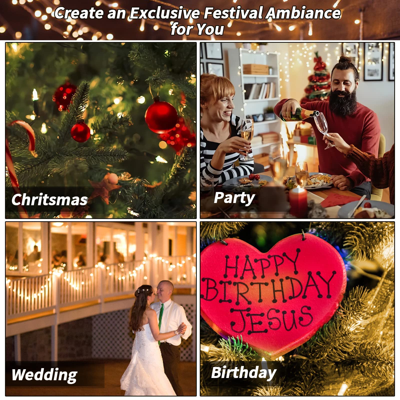 - [Extra-Long & Widely Used Outdoor/Indoor String Lights]-The solar LED string lights are 66FT long, the spacing of LED beads is 10cm, and the lead length is 6FT, which can be easily installed in the place where decoration is needed.