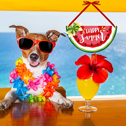 2 Pieces Watermelon Hanging Sign Summer Watermelon Hanging Door Sign Decor for Happy Summer Front Door Wreath Home Wall Decor with Rope