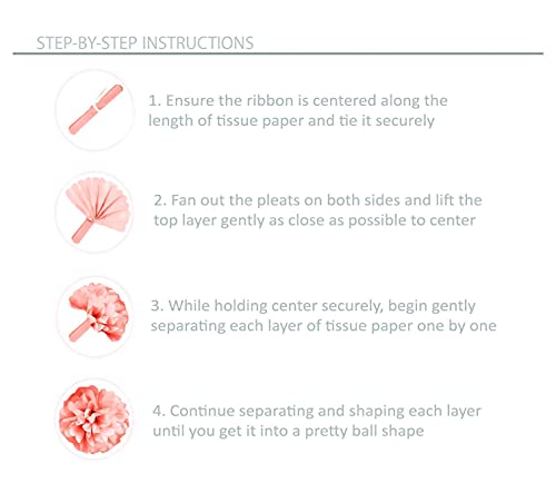 - PREMIUM QUALITY MATERIALS - We only use the most lush and generous amounts of high quality tissue paper to ensure that the final tissue flower pom poms will result in a perfect, round flower ball. They are easy to assemble, step-by-step instructions included