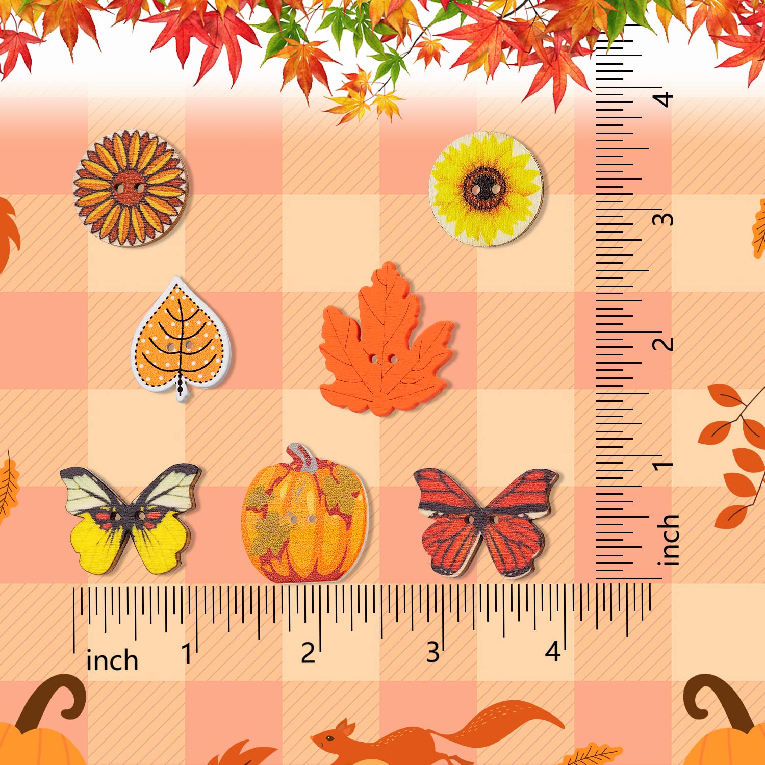 - ▼Thankgiving Day Series Shapes Wooden Buttons: Including leaves, pumpkins, sunflowers, butterfly . Different styles to meet your different needs in the festival.