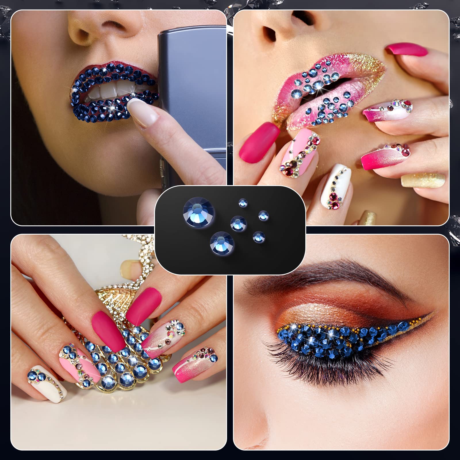 2000 Pieces Flat Back Gems Rhinestones 6 Sizes (1.5-6 Mm) Round Crystal Rhinestones with Pick up Tweezer and Rhinestones Picking Pen for Crafts Nail Clothes Shoes Bags DIY Art (Navy Blue)
