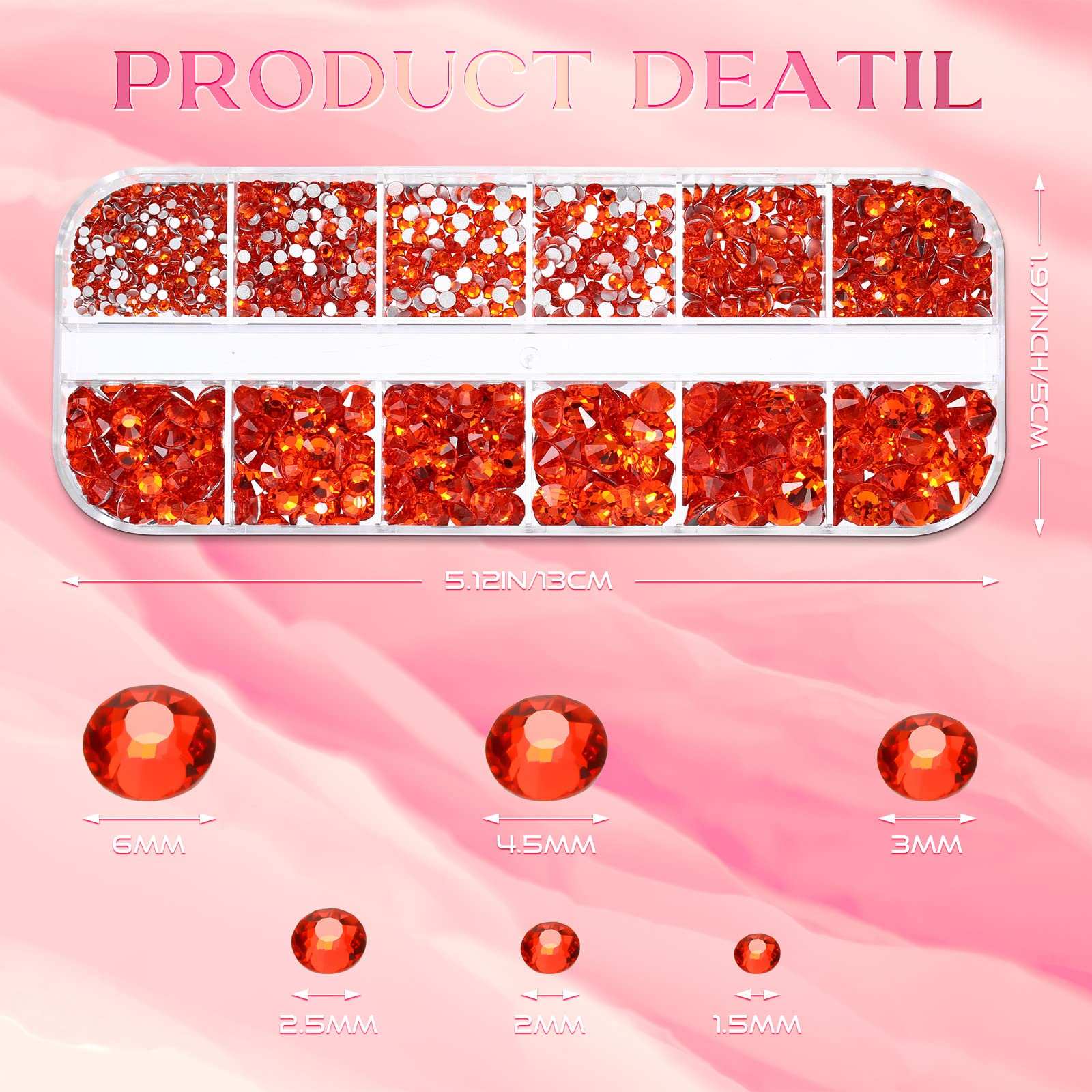 2000 Pieces Flat Back Gems Rhinestones 6 Sizes (1.5-6 Mm) Round Crystal Rhinestones with Pick up Tweezer and Rhinestones Picking Pen for Crafts Nail Clothes Shoes Bags DIY Art (Orange)