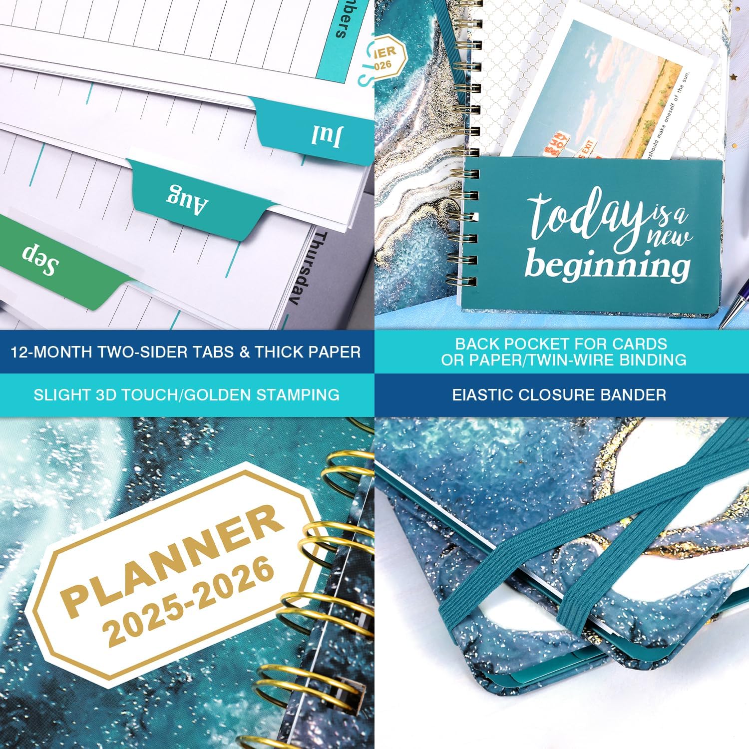 Sturdy and Durable - Weekly Planner 2025-2026 with high quality white paper for clean writing and reducing ink through. Durable hardcover, the gorgeous pattern on cover makes the 2025-2026 planner more individualized. Sturdy golden twin-wire binding allows turning pages smoothly and laying flat.