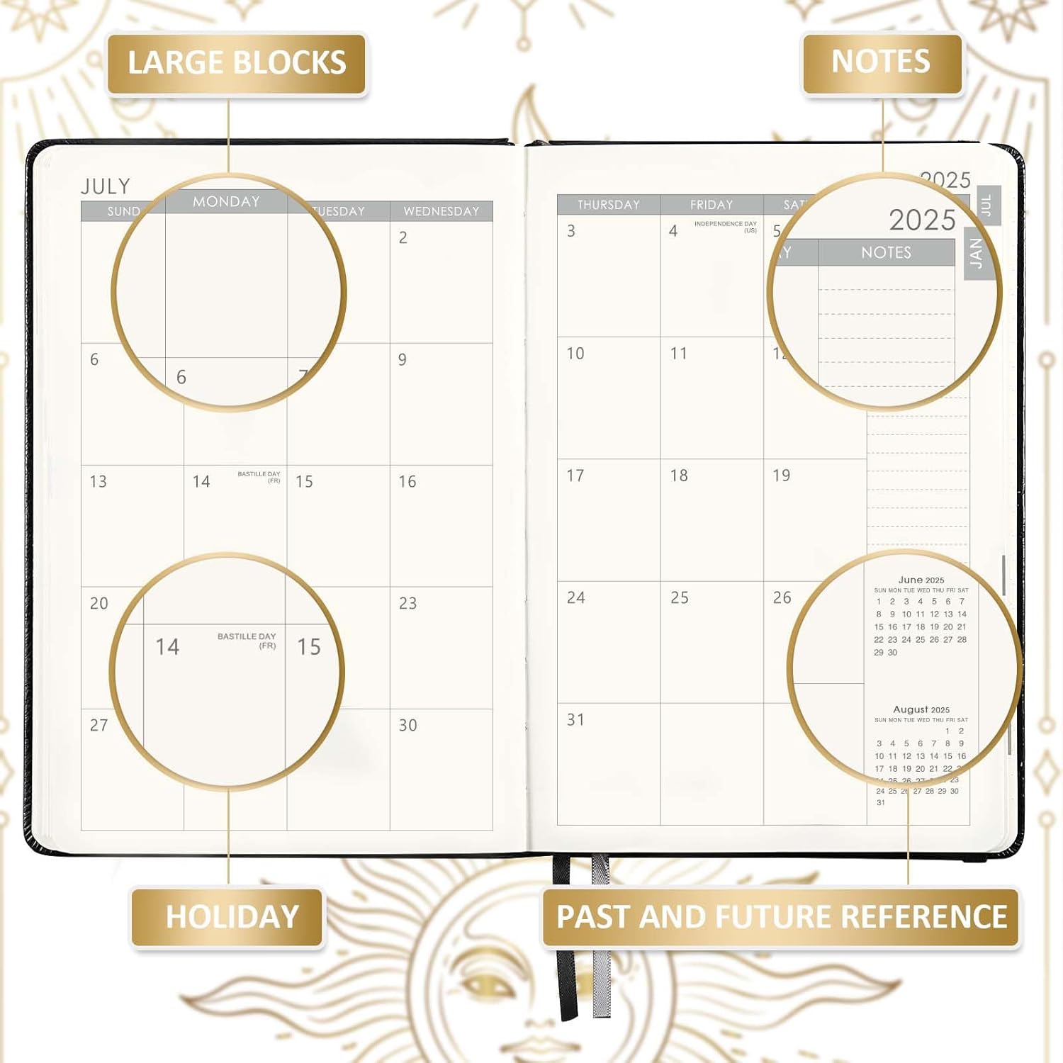 Planner 2025-2026 - Academic Planner 2025-2026, July 2025 - June 2026, 5.75" x 8.25", Weekly and Monthly, Faux Leather with Back Pocket & 40 Notes Pages - The Sun