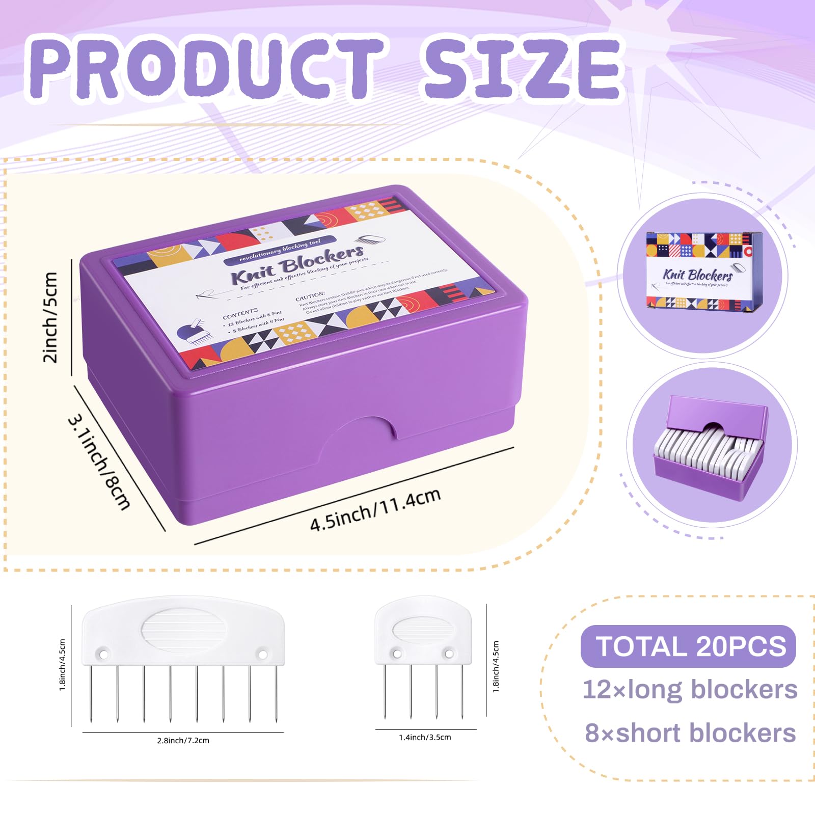 - Knit Blocking Combs:The "Knit Blocking Combs" Tool Box includes 12pcs * 8-pins large knit blocking combs, 8pcs * 4-pins small knit blocking combs, Total 20Pcs knit blocking combs in a toolbox.