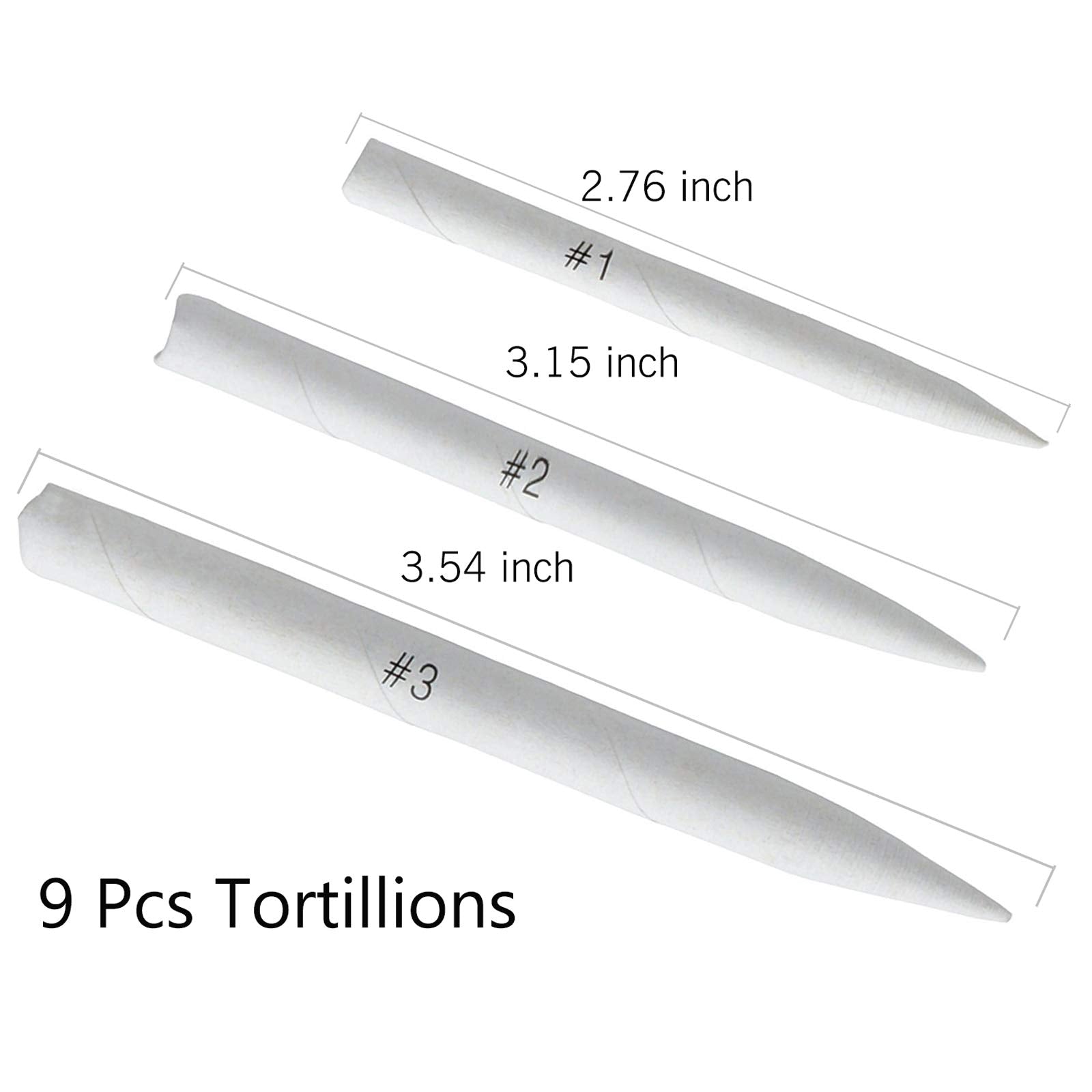 - DIFFERENT SIZES - Blending stumps set assorted size: #1, #2, #3, #4, #5, #6, #7, #8, each size 1 pc; Tortillion set size: #1, #2, #3, each size 3 pcs;This charcoal blending stumps and tortillion set can be sharpened by sandpaper blocks.Use them for blending pencil, pastels, and charcoal. Keep the stumps pointed by sharpening them with a sanding block.