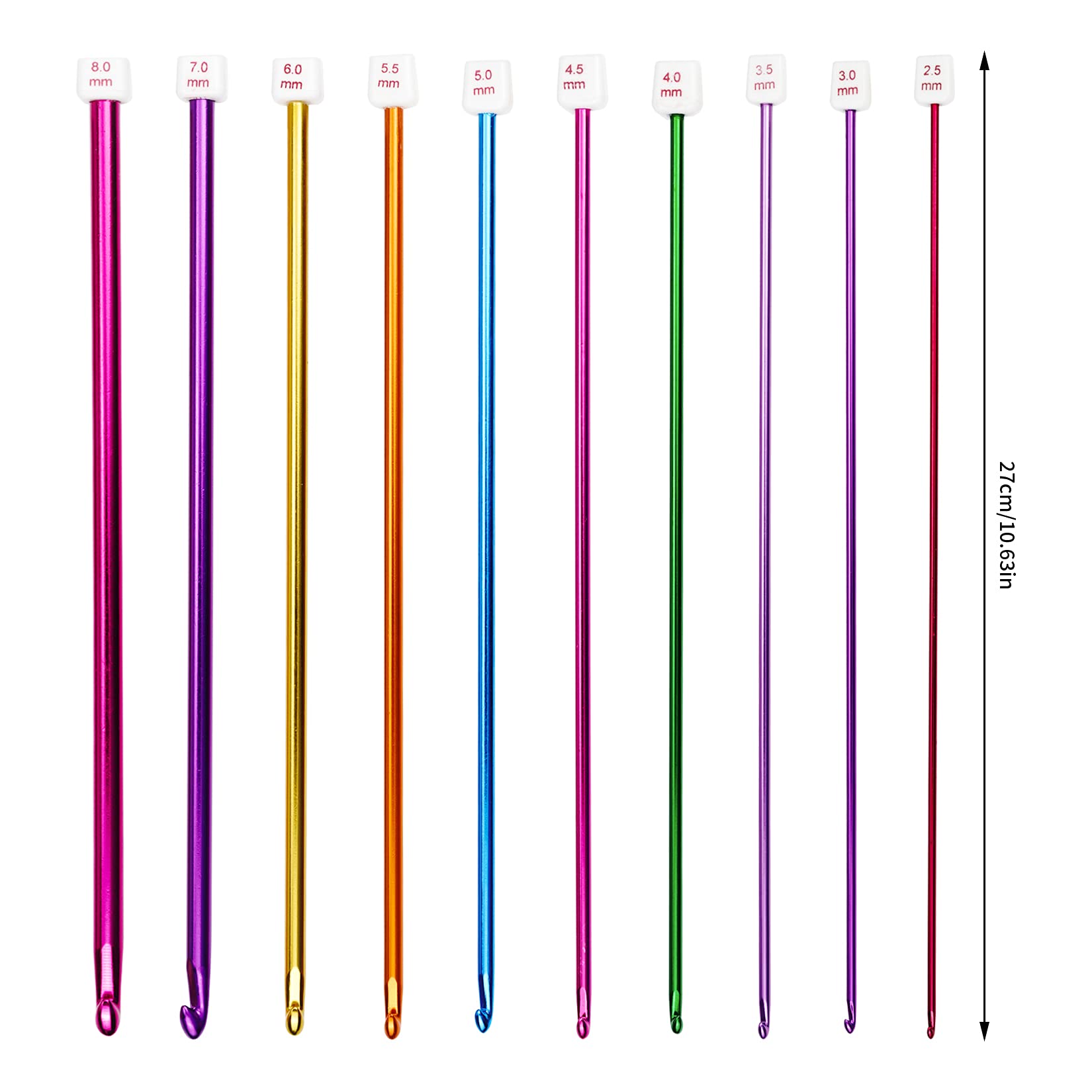 23 Pieces Tunisian Crochet Hooks Kit Including 12pcs 3-10 mm Bamboo Knitting Needle with Bead Carbonized Bamboo Needle + 11pcs 2-8 mm Multi Color Tunisian Afghan Aluminum Crochet Hooks