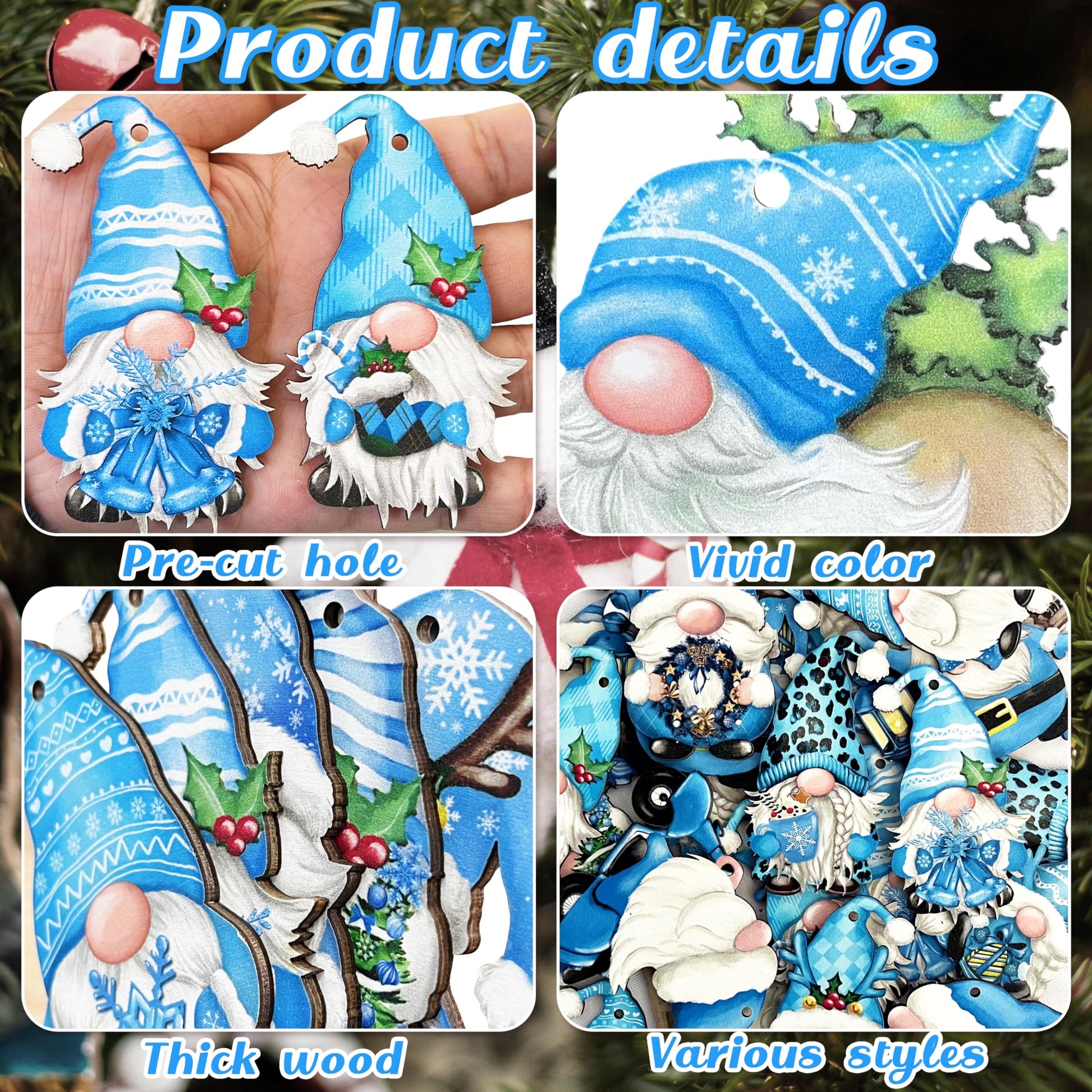- New Designed Christmas Gnome Wooden Ornaments -- 24 PCS gnome wooden slices with exquisite workmanship in 12 different styles are made of high-quality wood, painting in front and empty at back.