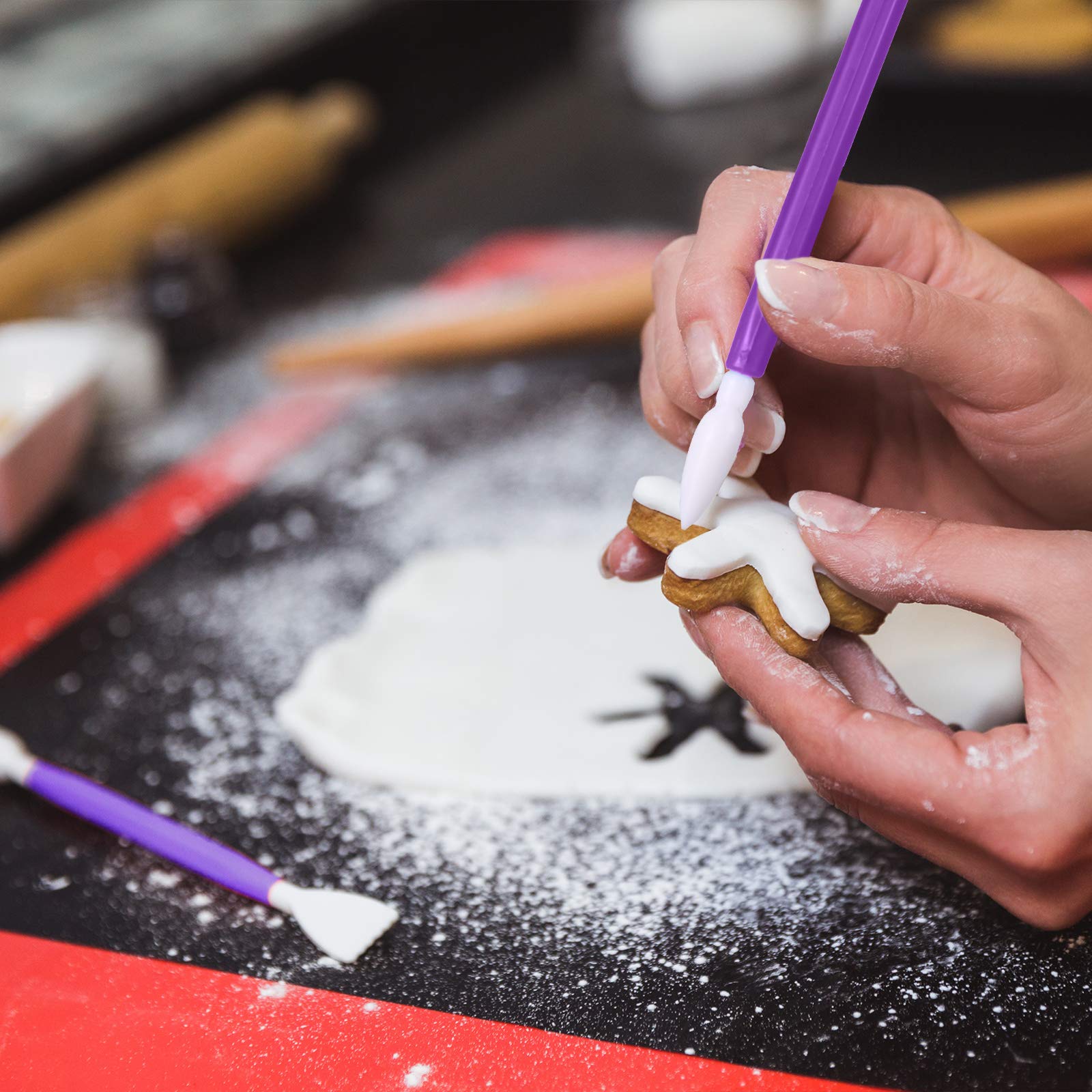 24 Pieces Cookie Decorating Tool Set Fondant Cake Decorating Tool Set Include Decoration Brushes Sugar Stir Needle Fondant Modeling Tool Elbow and Straight Tweezer for Cookie Cake Decoration (Purple)