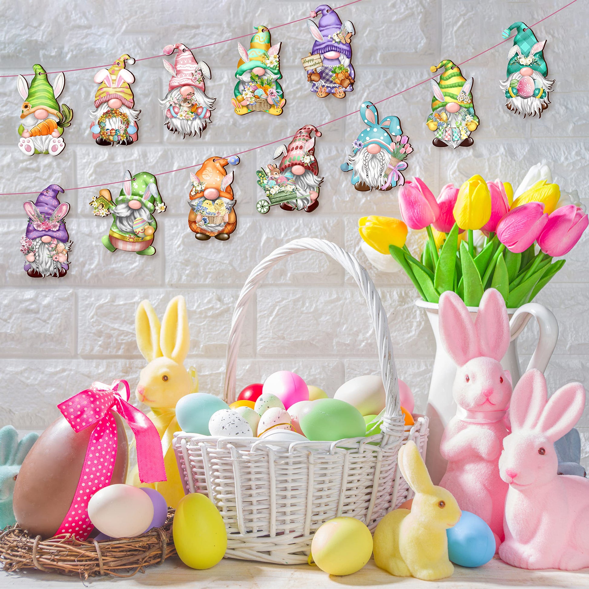Details: 24 Pieces Easter Wooden Gnome Hanging Ornaments, Wood Hanging Decor for Easter Spring Tree Decoration Gnomes Bunny Doll Wooden Hanging Craft Easter Party Supplies Home Decor