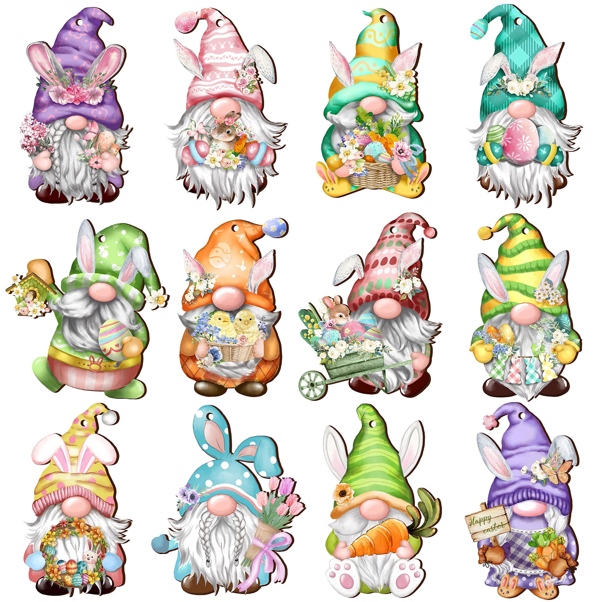 - New Designed Easter Gnome Wooden Ornaments -- 24 PCS gnome wooden slices with exquisite workmanship in 12 different styles are made of high-quality wood, painting in front and empty at back.