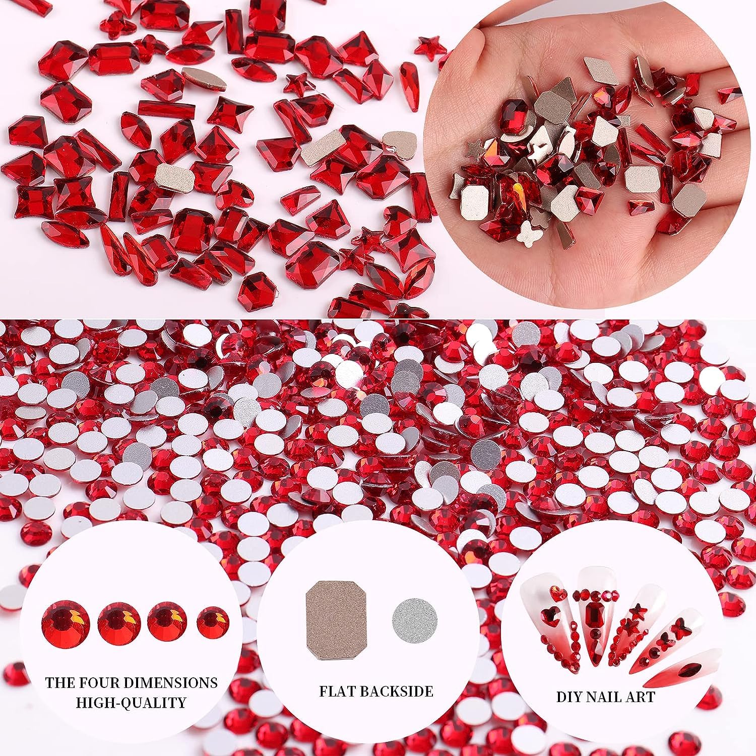 2680 Pcs 3D Red Nail Rhinestones, 120Pcs Big Red Glass Crystal Nail Gems Stones Charms Stones with Bling Diamond Flatback Round Beads, Clear Charm Jewelry for DIY Face Craft Decoration