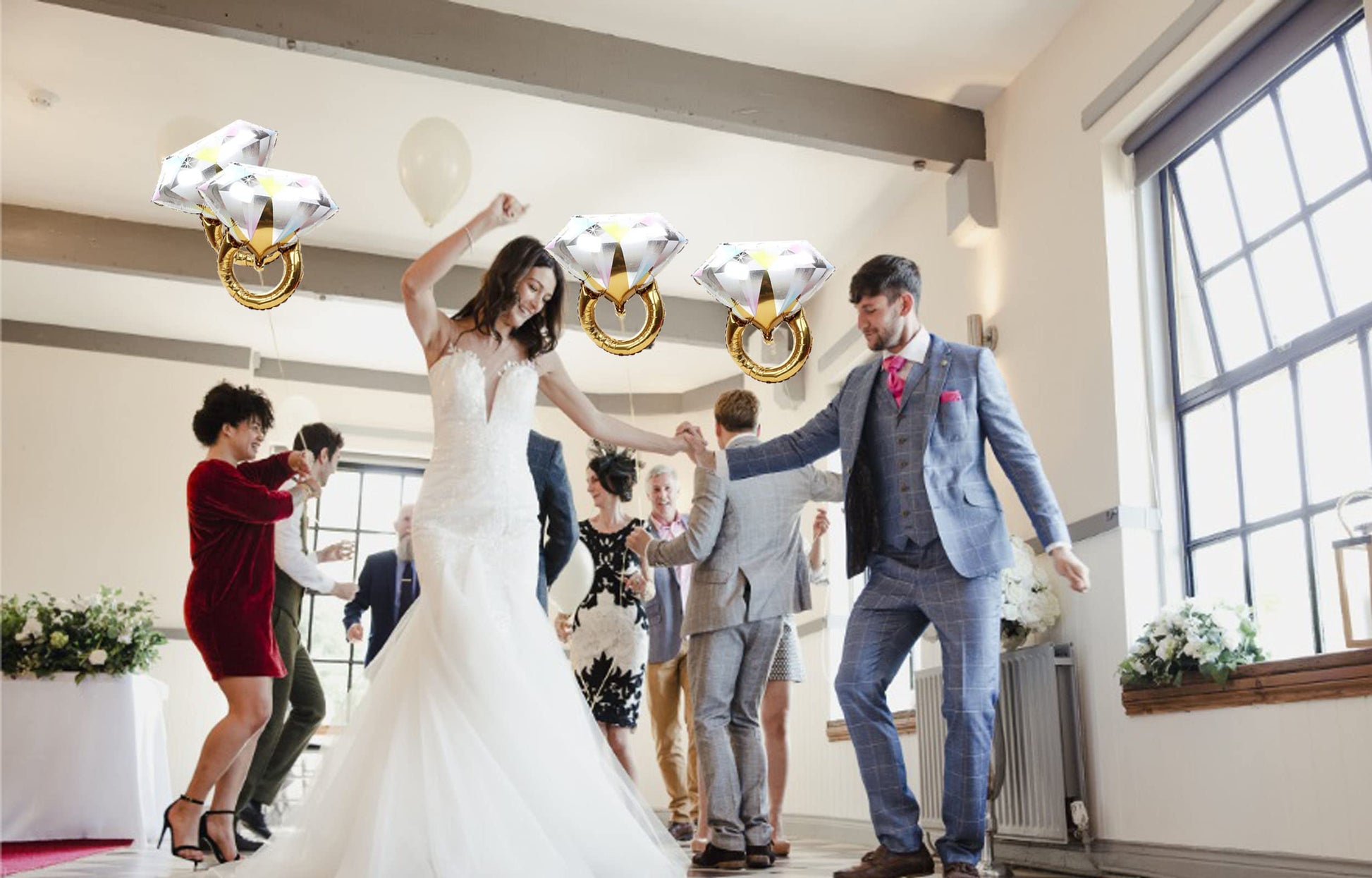 2Pcs Diamond Ring Aluminum Balloon,Wedding Bridal Shower Marriage Engagement Party Supplies