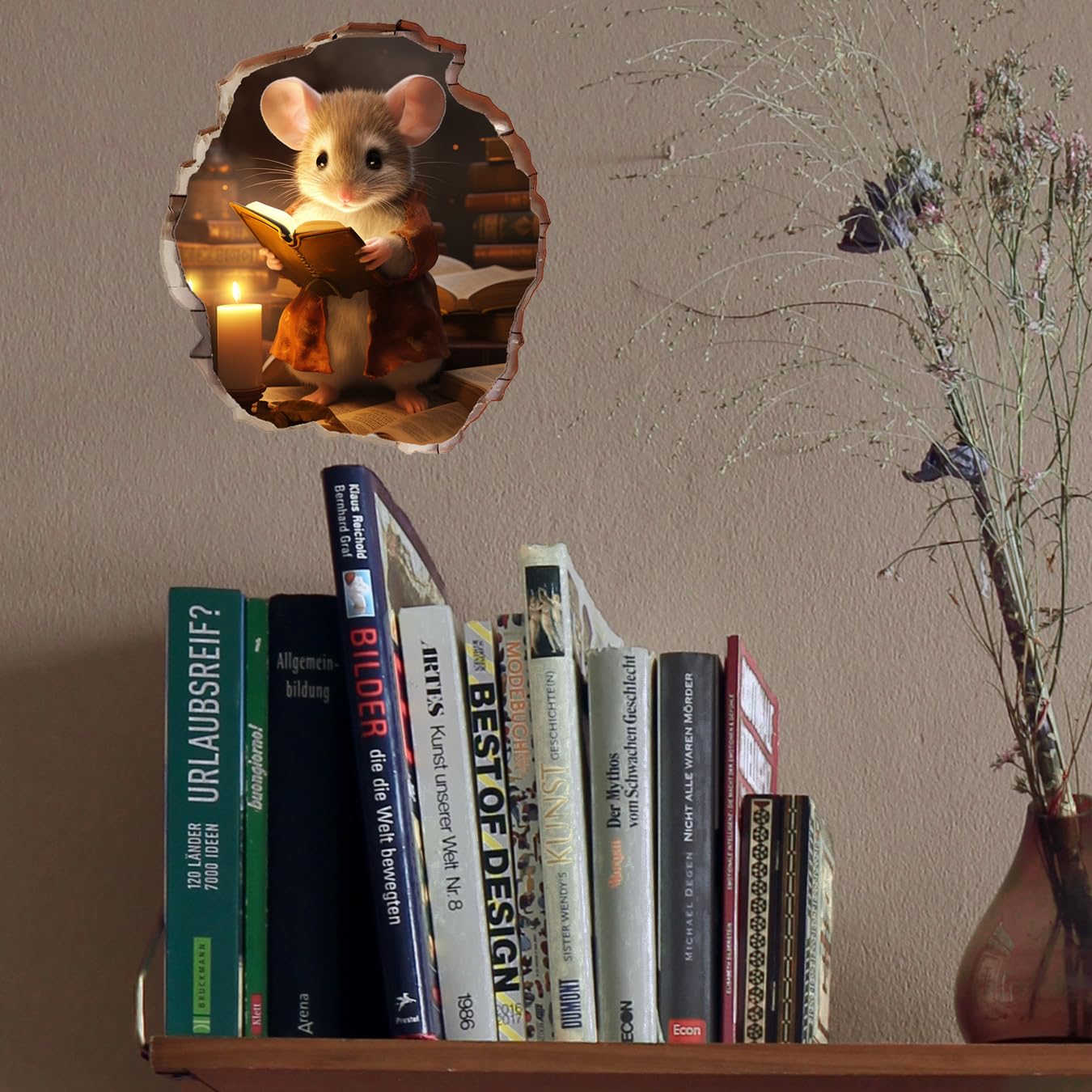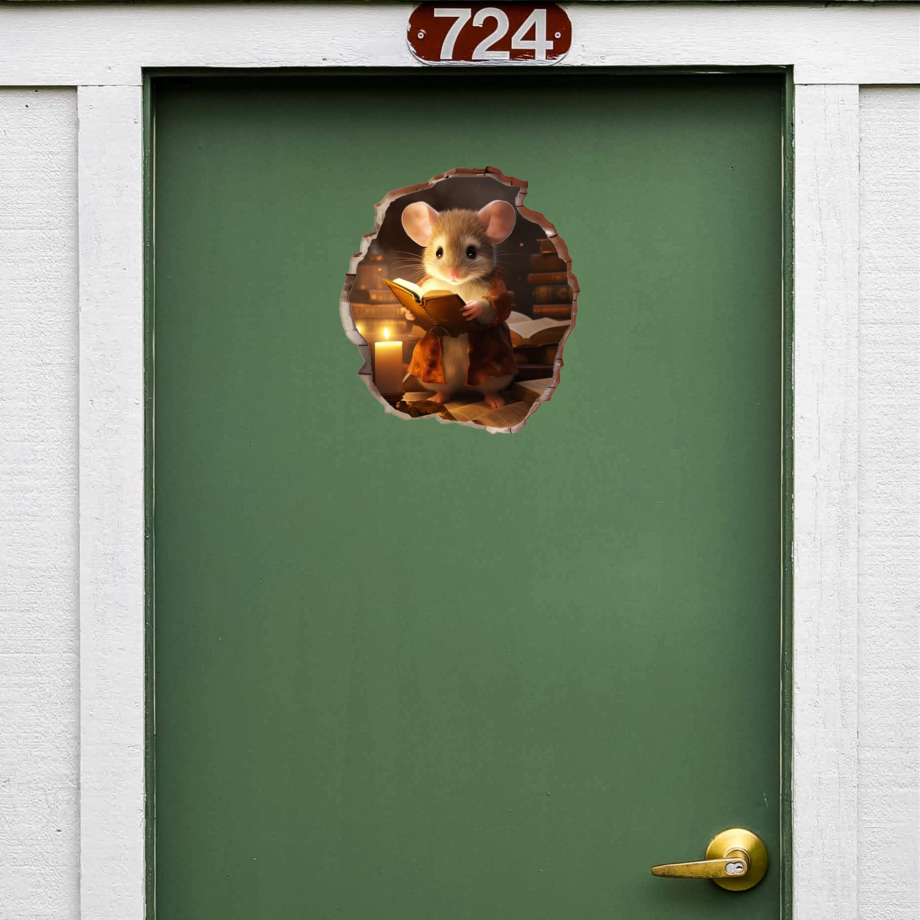 2x Mouse Hole 3D Wall Stickers-Mouse Reading Book,Mouse Hole Decal, Mouse Wall Decal,Handmade Wall Clings,Mouse Wall Stickers & Murals,Wall Decor For Home, Kids Room,Gift Idea