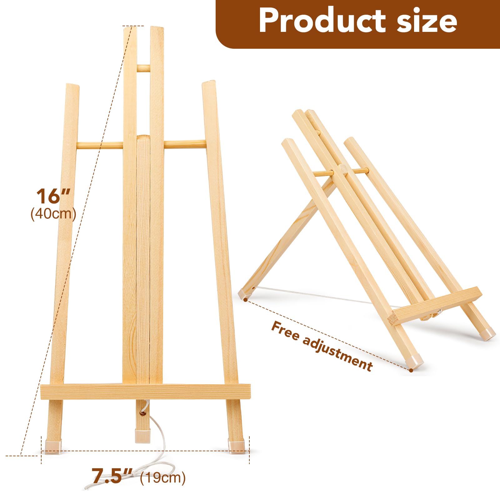 - 【Portability】: high-quality small size 15 inch wood tabletop display easels foldable A-frame studio artist's tripod easel. A natural wood colored easel. They are easy to carry, folding design, no need to assembly, lightweight.