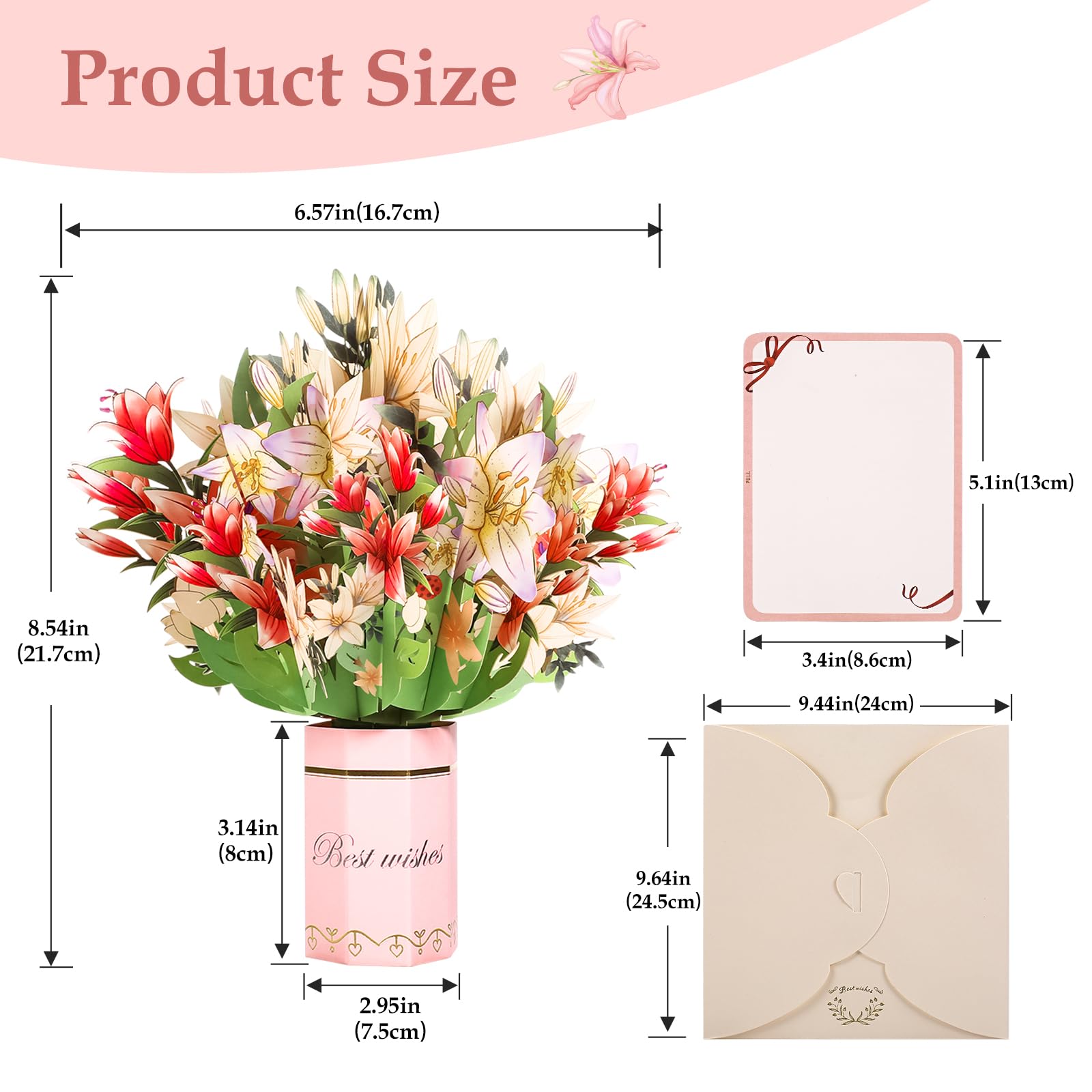 - Bulk Bouquet: Contains cherry blossoms,lily and Rose.Each card features a stunning pop-up bouquet that unfolds in your hand,bringing joy to your loved ones on their special day,creating an unforgettable magical experience
