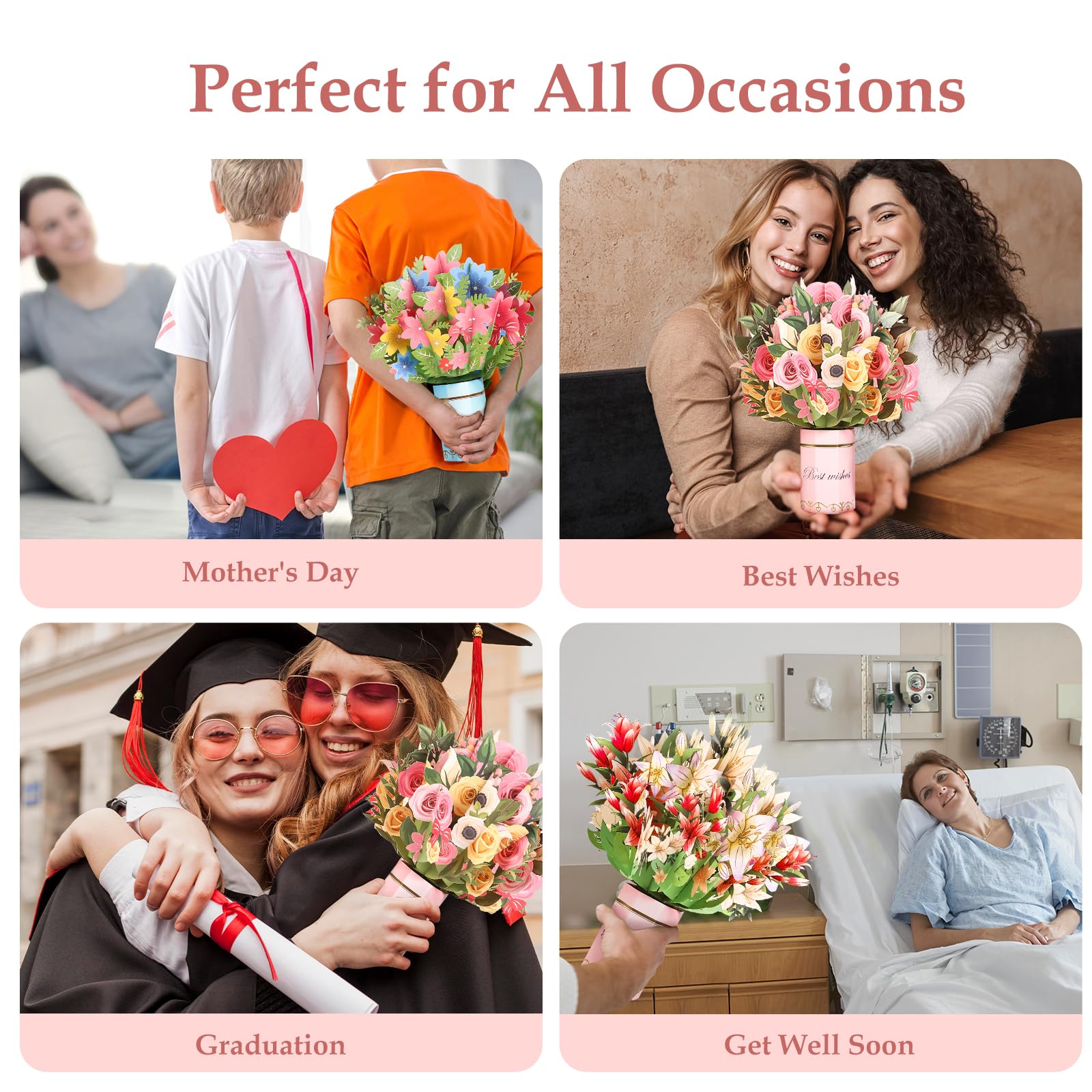 - Art Meets Craft: Our pop up paper flowers are printed on high-quality paper to ensure durability and a sense of quality. The complex details and vibrant colors of paper flowers make every card a true artwork,and the paper bouquet blooms forever,allowing for long-term preservation,collection,and preservation of beautiful memories