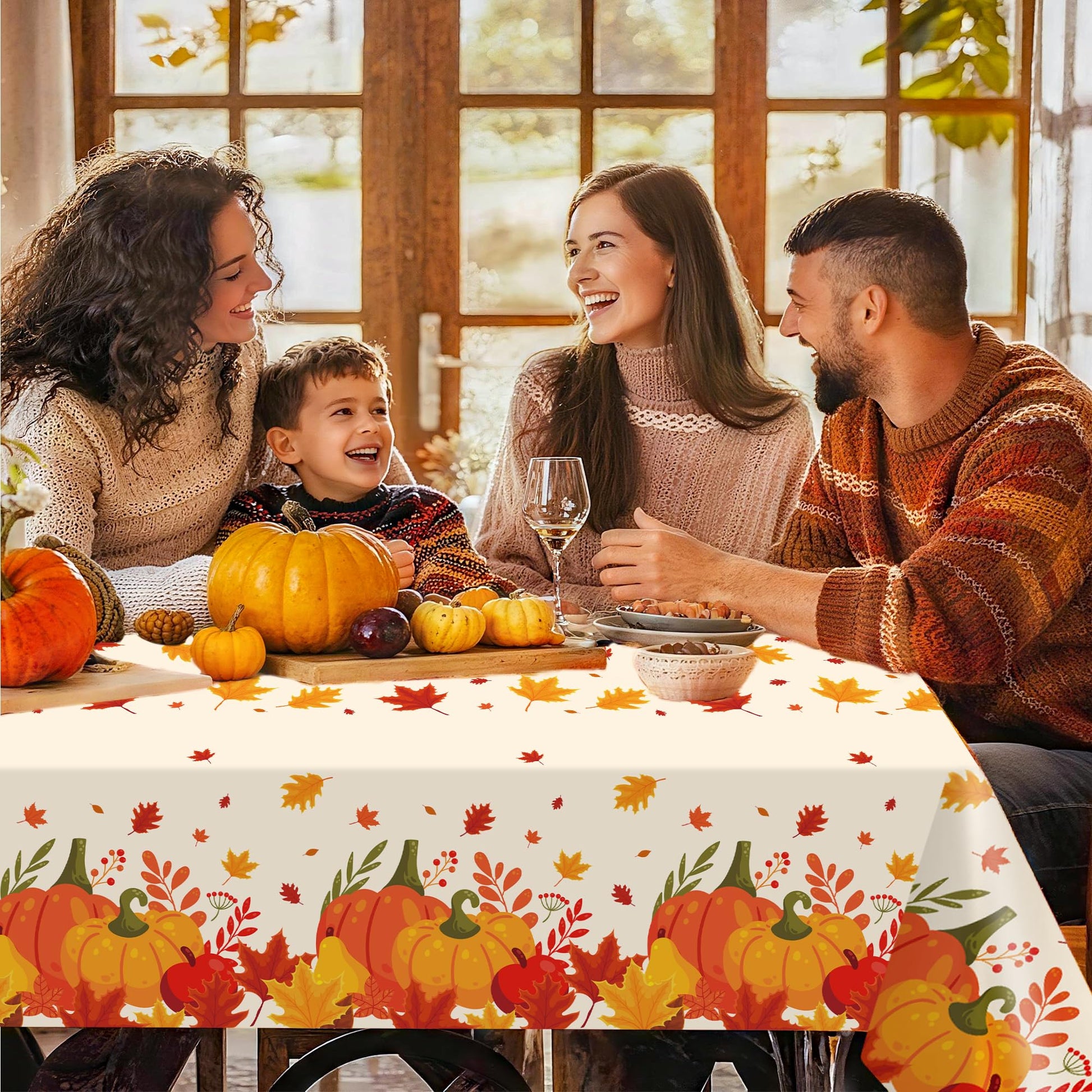 - Autumn Style: The plastic table cloths disposable thanksgiving are full of autumn element. Ideal fall table decorations with lovely pumpkin and maple leaves patterns in bright colors