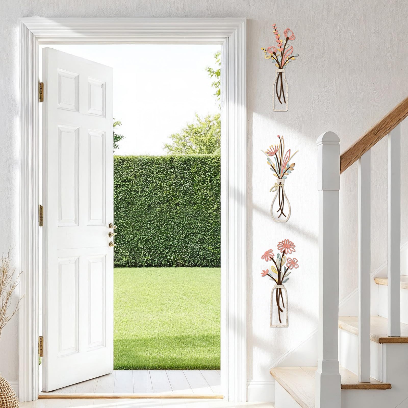 - Trendy Boho Style: Embrace the modern boho trend with these chic metal vase flowers wall art that adds a unique artistic flair to your decor.Surprise your loved ones with this thoughtful and stylish wall art set, perfect for housewarming or special occasions.
