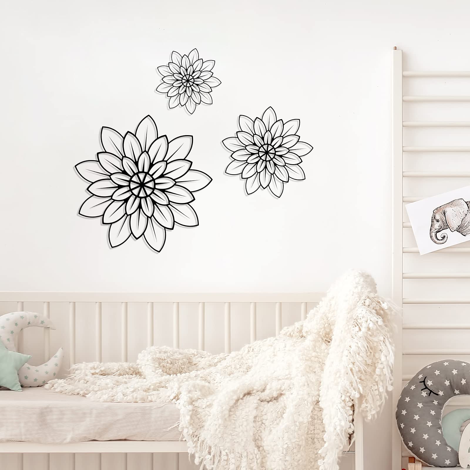 3 Pieces Metal Wall Art Metal Flowers Wall Decor Metal Wall Art Floral Home Decoration for Bedroom Living Room, Bathroom, Kitchen, Outdoor (Black)