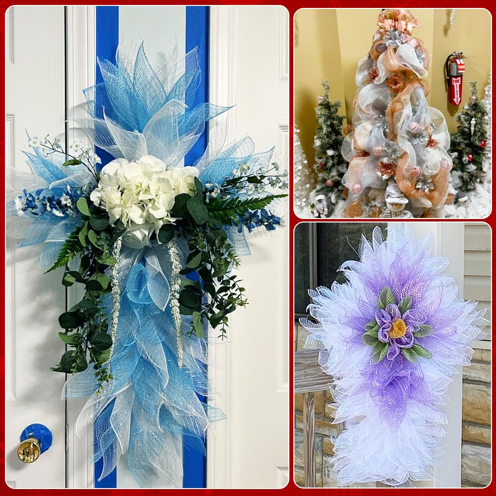 - PREMIUM QUALITY MATERIAL - The mesh ribbon for wreath making is made of polypropylene which is lightweight and soft. The high-quality mesh features thin metallic strips, adding a touch of sparkle and allure to your DIY crafts
