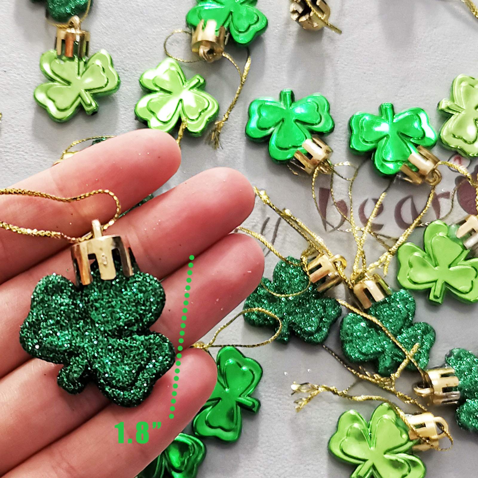 - What You Get: One St. Patrick's Day Shamrocks Ornament Set including 30pcs green clover baubles in 3 style, just like the main picture shown