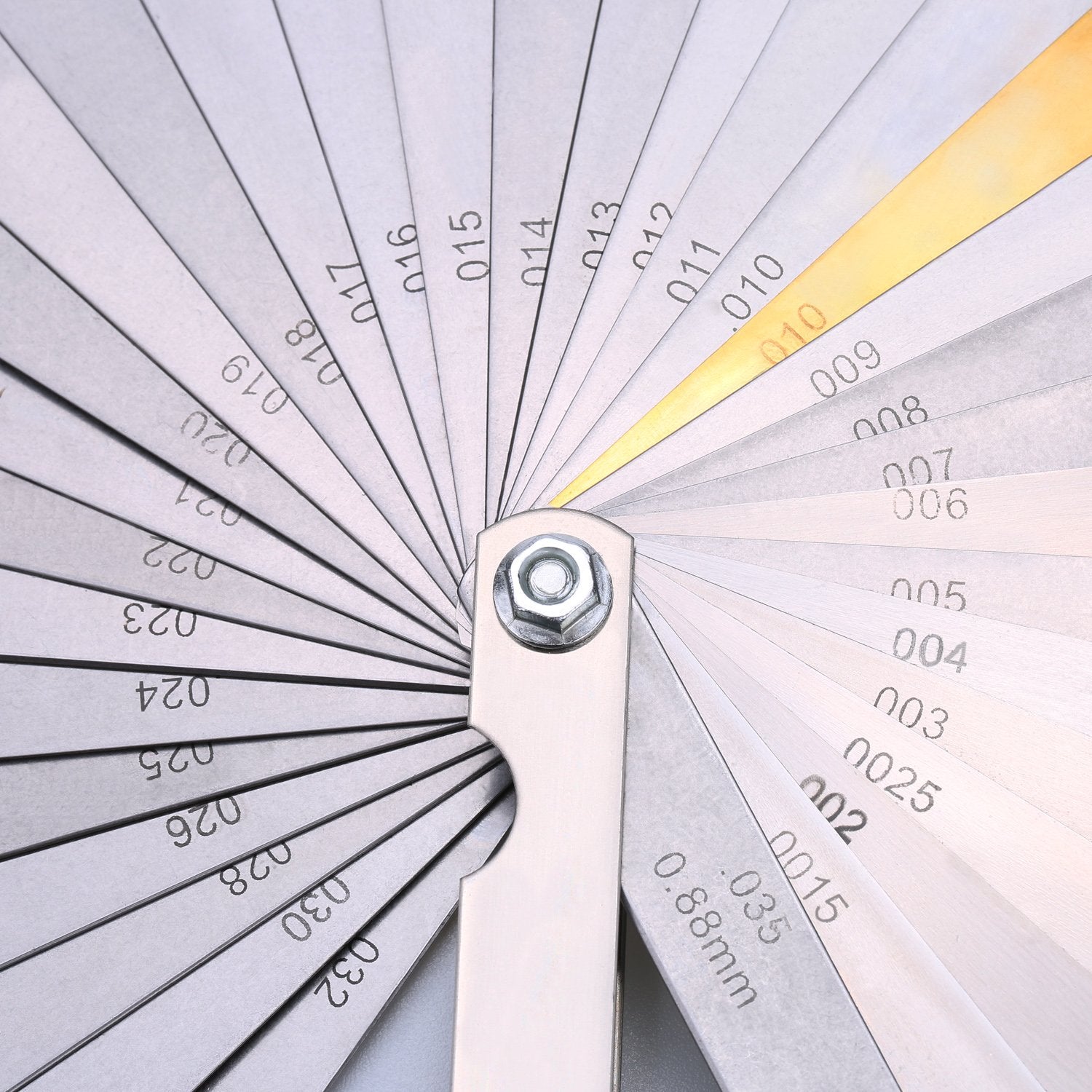 32 Blades Steel Feeler Gauge Dual Marked Metric and Imperial Measuring Tool