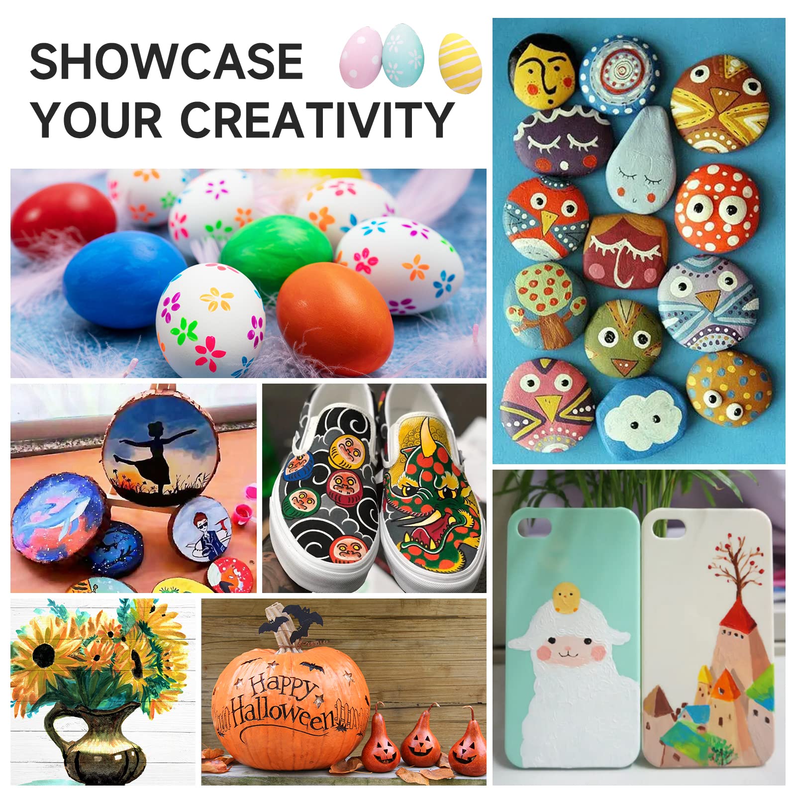 - ✎【Multi-Purpose & Direct Use】These acrylic paint pens are suitable for almost surfaces, such as metal,glass,plastic,canvas,stone, paper, ceramic, rock, fabric,mug,wood and many other surface.And the paint markers can be directly use without frequency shaking and hard pressing.Just simply take off the cap and start creating! ❤❤❤Warm tip: Please close the cap after use to keep the markers more smooth.❤❤❤