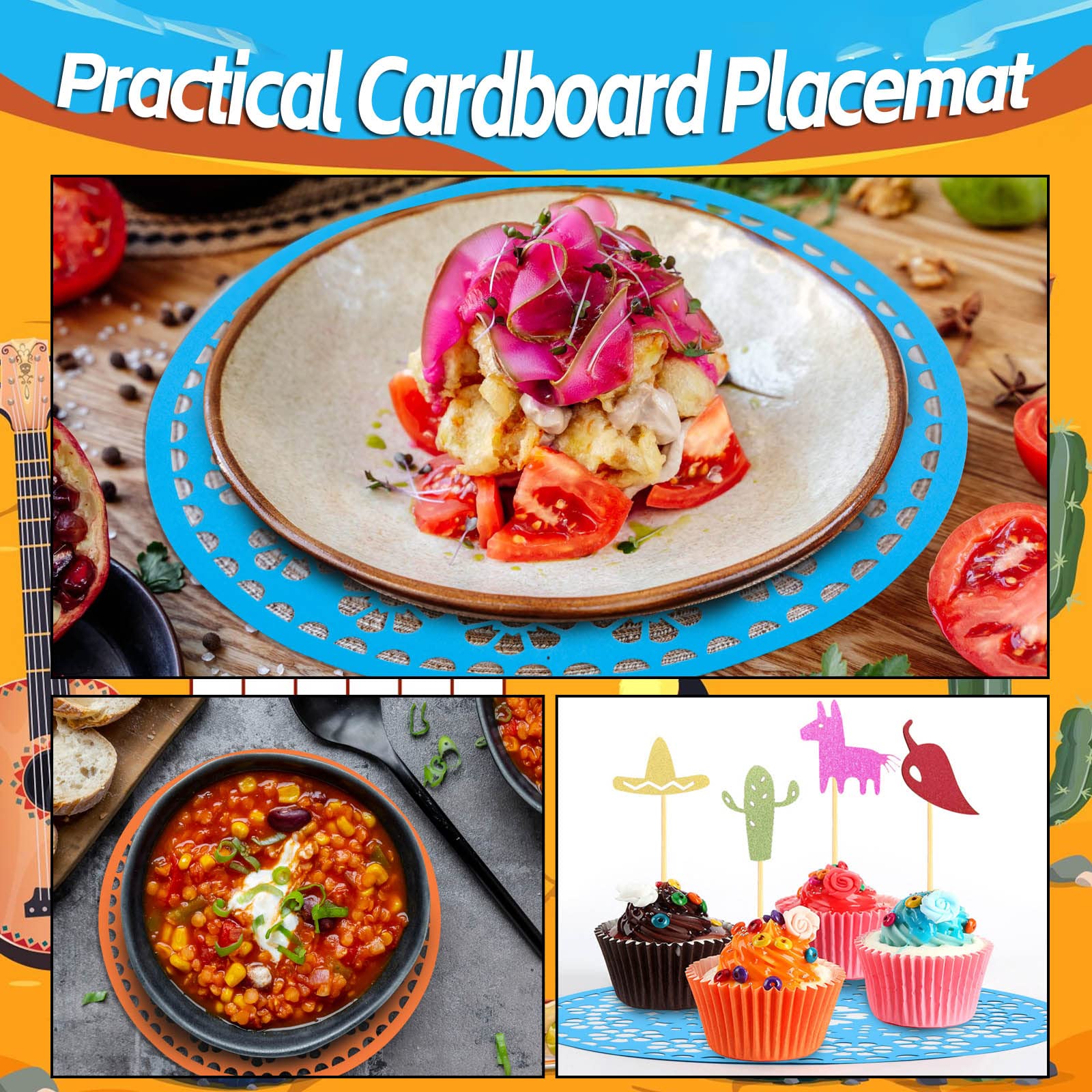 - Wide range of applications: the fiesta party table mats can be applied for decorating Mexican Party, Cino de Mayo, Mexican Independence Day, Day of The Dead; setting them on the tables, desks and bar counters will draw guest's attention easily