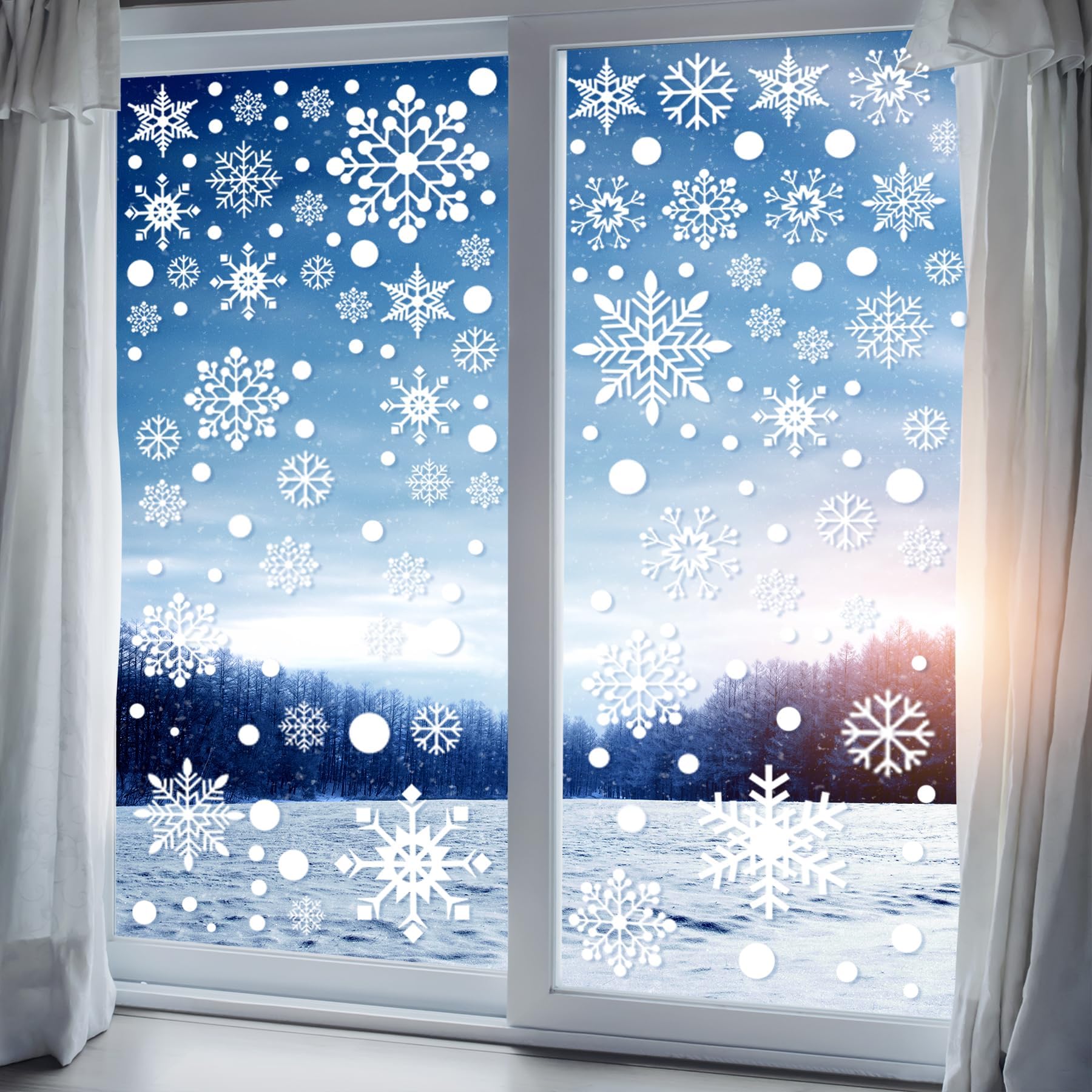 - You will get: 321 Pcs 9 sheets Christmas window clings for glass windows, each 11.8x7.8 inch, all in one bag. christmas decorations 3 different designs, each sheet of paper contains 18 white snowflakes.