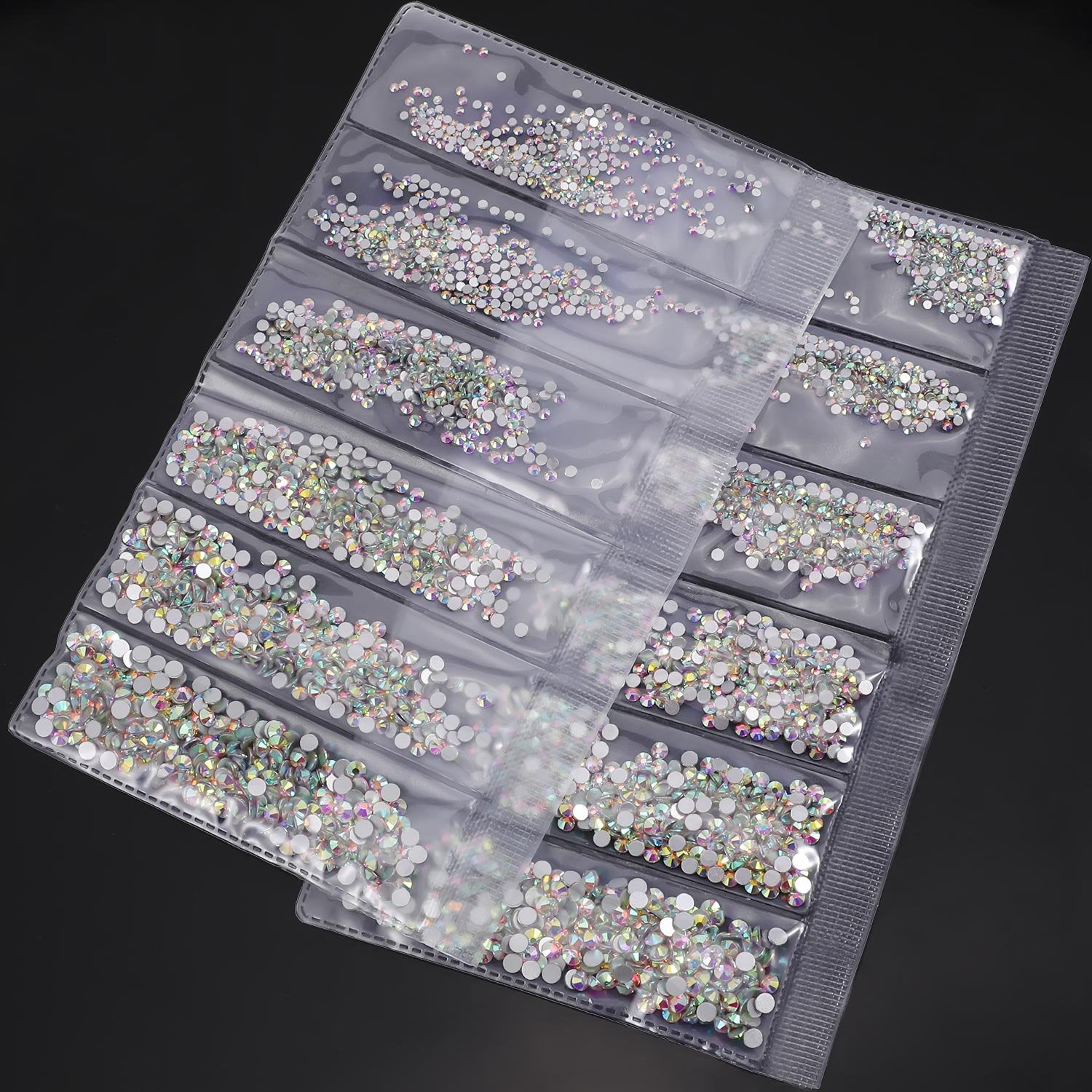 - Large quantity: 2 bags of flat back rhinestones (each bag has 6 compartments), each size has about 576 pieces; Totally approx. 3456 pieces nail rhinestones