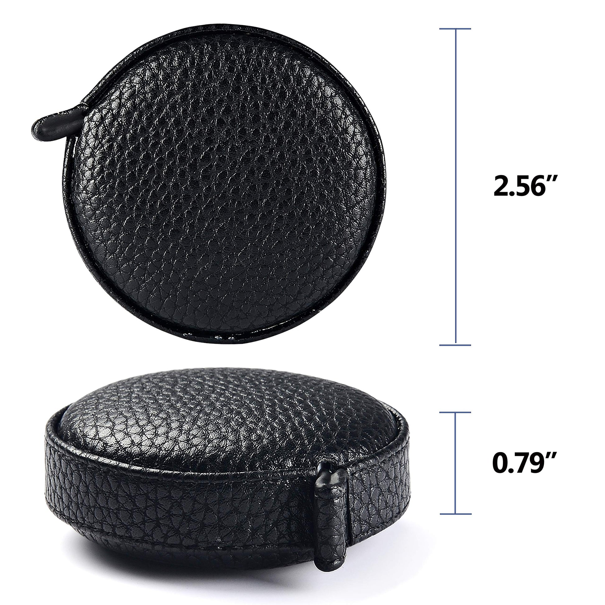 - SHIMMERY BLACK TAPE MEASURE LEATHER-COVERED is sized in a convenient and compact 2.5 inch diameter Leather case which is made of premium litchi leather, Fit comfortably into your hand, perfect gift for a seamstress, a crafter, a quilter or whoever just needs a flexible measuring tape.
