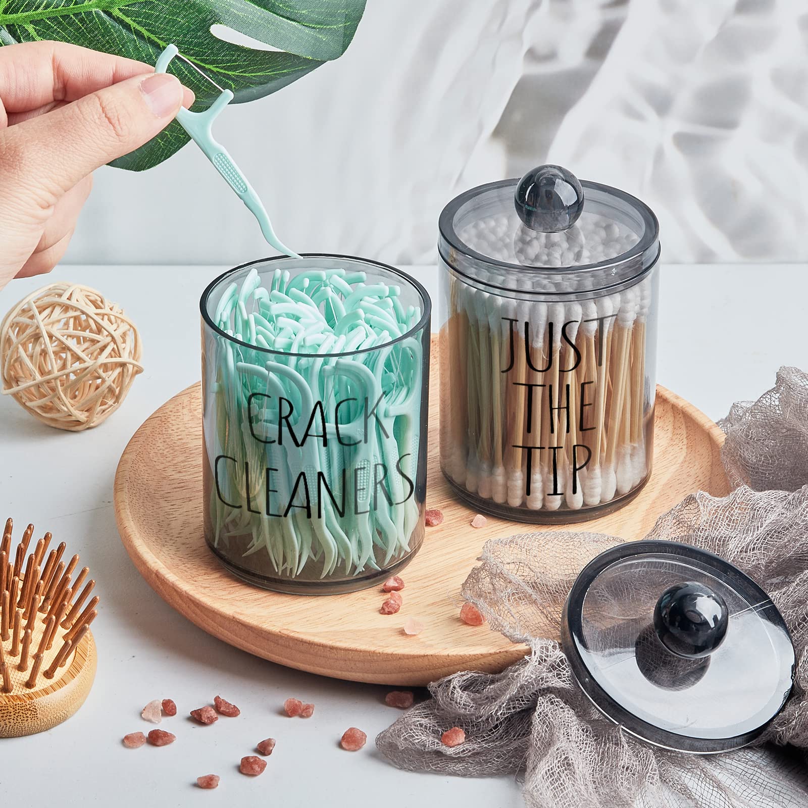 - Ideal Size Organizer: Each bathroom canister is 10 oz, perfect bathroom item container for small items, such as q tip,cotton ball, cotton swab pad, cotton rounds, floss picks, tampon, bath salts, hair tie band, make-up brush, clip,beauty egg and more.