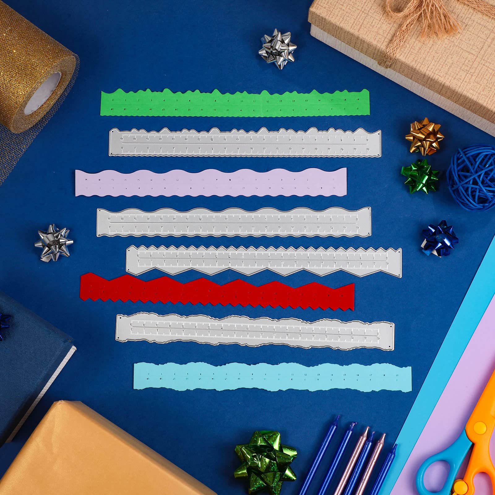 4 Pieces 8.4 Inches Metal Irregular Edges Ruler Deckle Edges Ruler Measuring Embossing Cutting Dies Paper Tearing Ruler for Card Making Scrapbooking Craft Decor Office DIY Tools