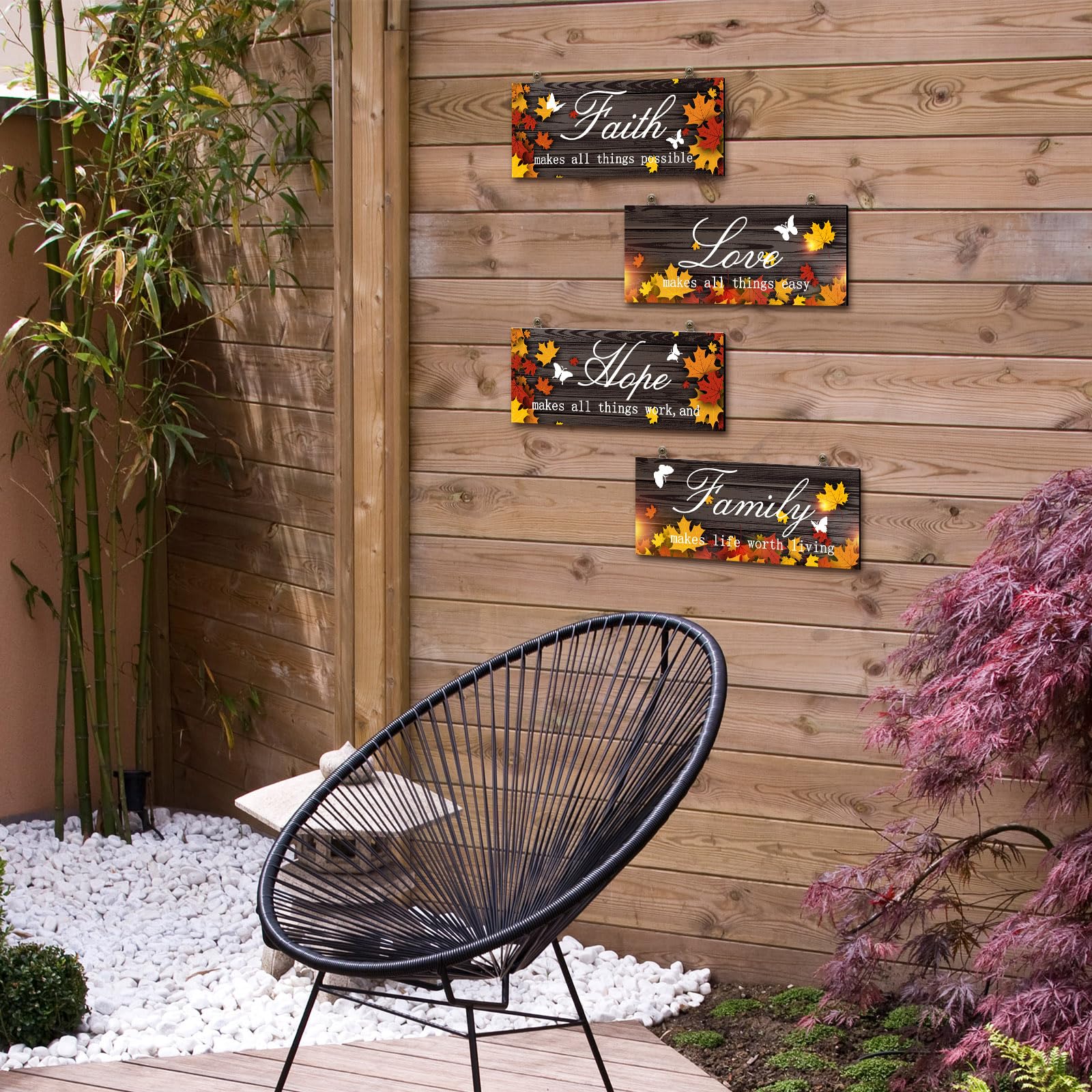- What you will get: there are 4 pieces faith love hope family wood signs in our package, you can use them to decorate your home, office, shop and other places you want, the rustic style will make your place more beautiful and natural