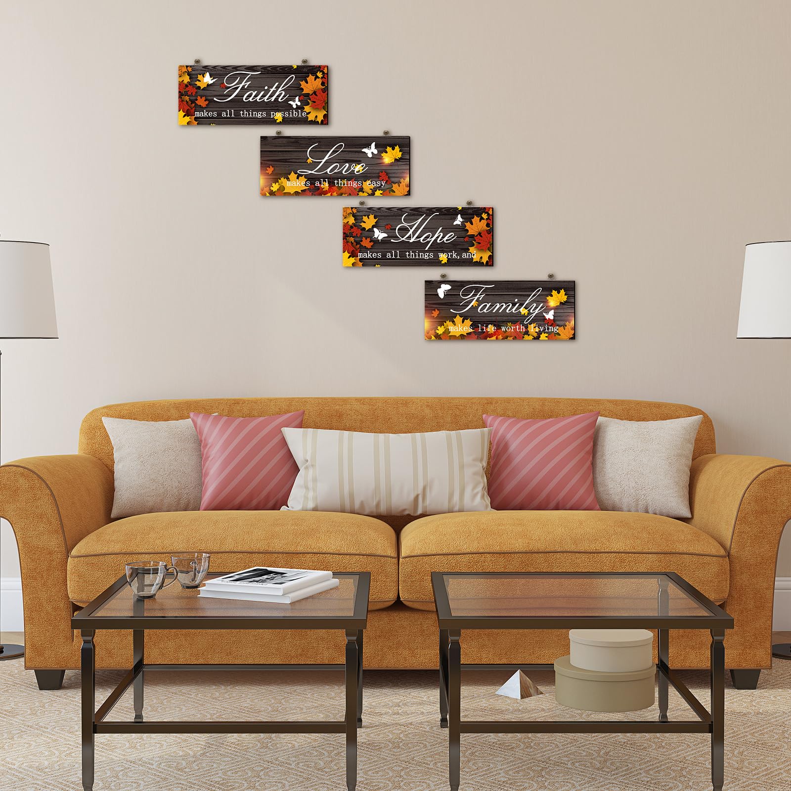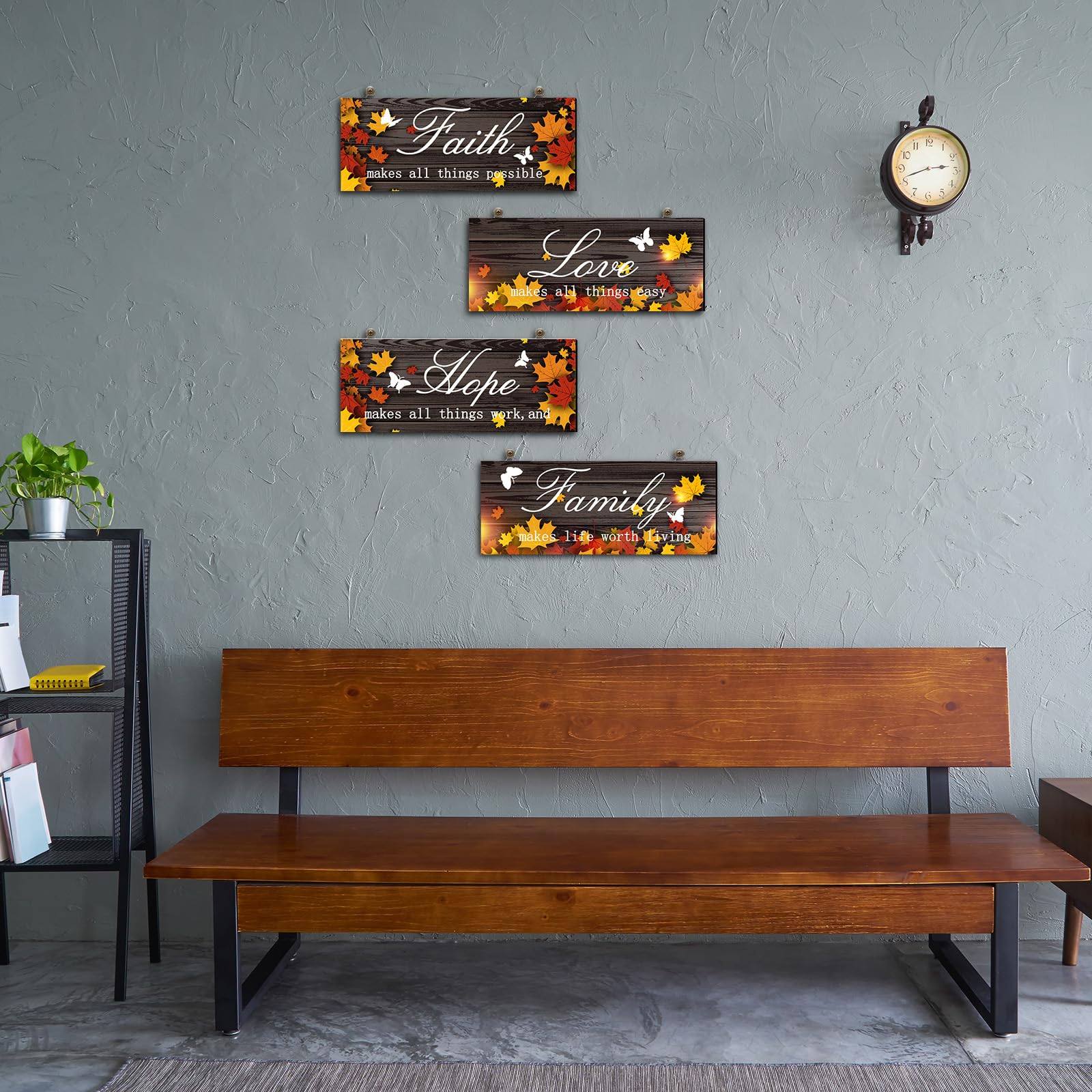 4 Pieces Fall Door Decoration Maple Door Plaque Faith Hope Family Wood Sign Maple Leaf Hanging Sign Rustic Farmhouse Hanging Decor for Home Living Room Supplies, 10 x 4 Inch (Pretty Style)