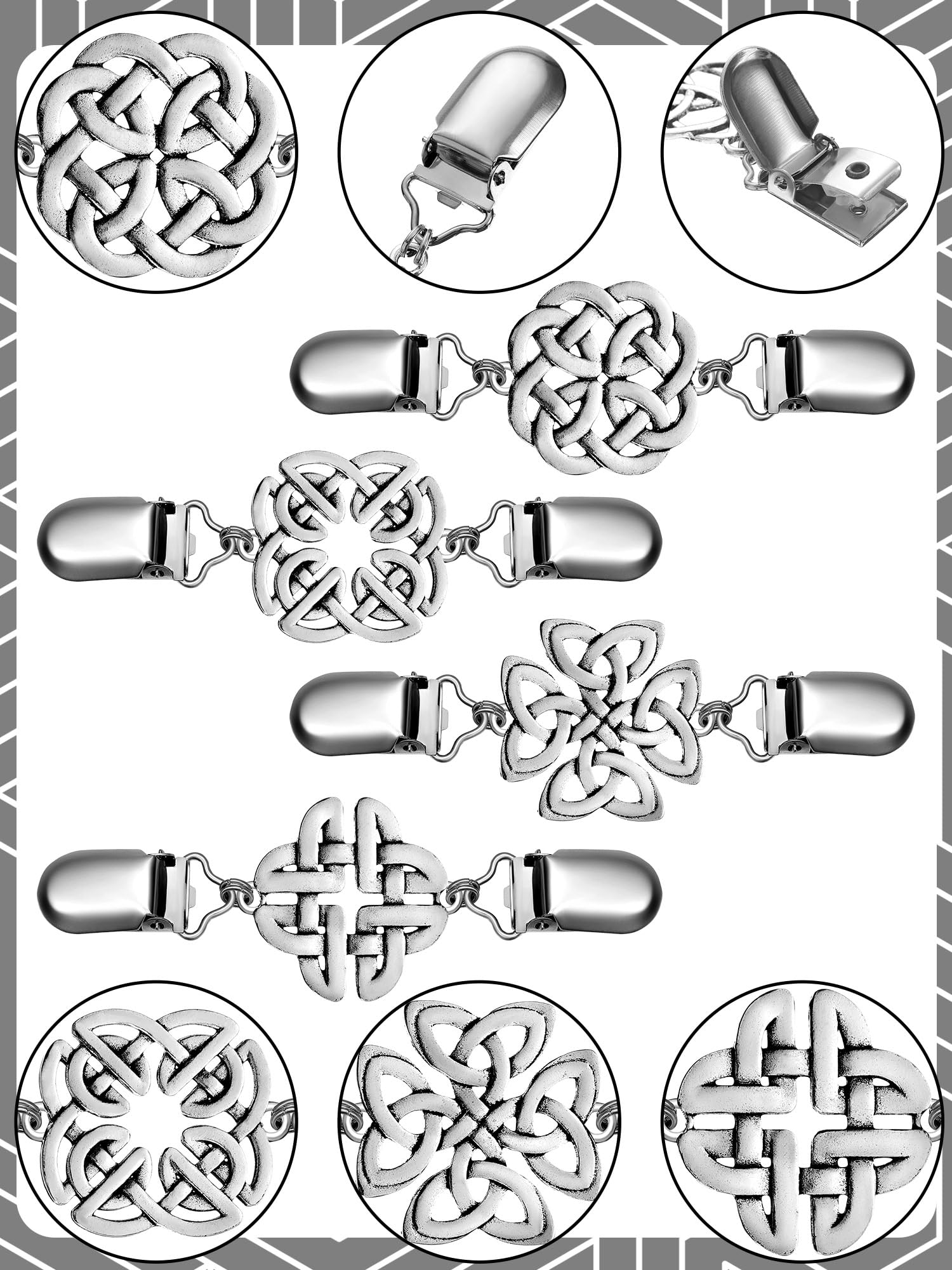 4 Pieces Vintage Sweater Shawl Clips Retro Cardigan Collar Clips Dress Shirt Brooch Clips for Women Girls Wearing, 4 Styles (Casual Style)