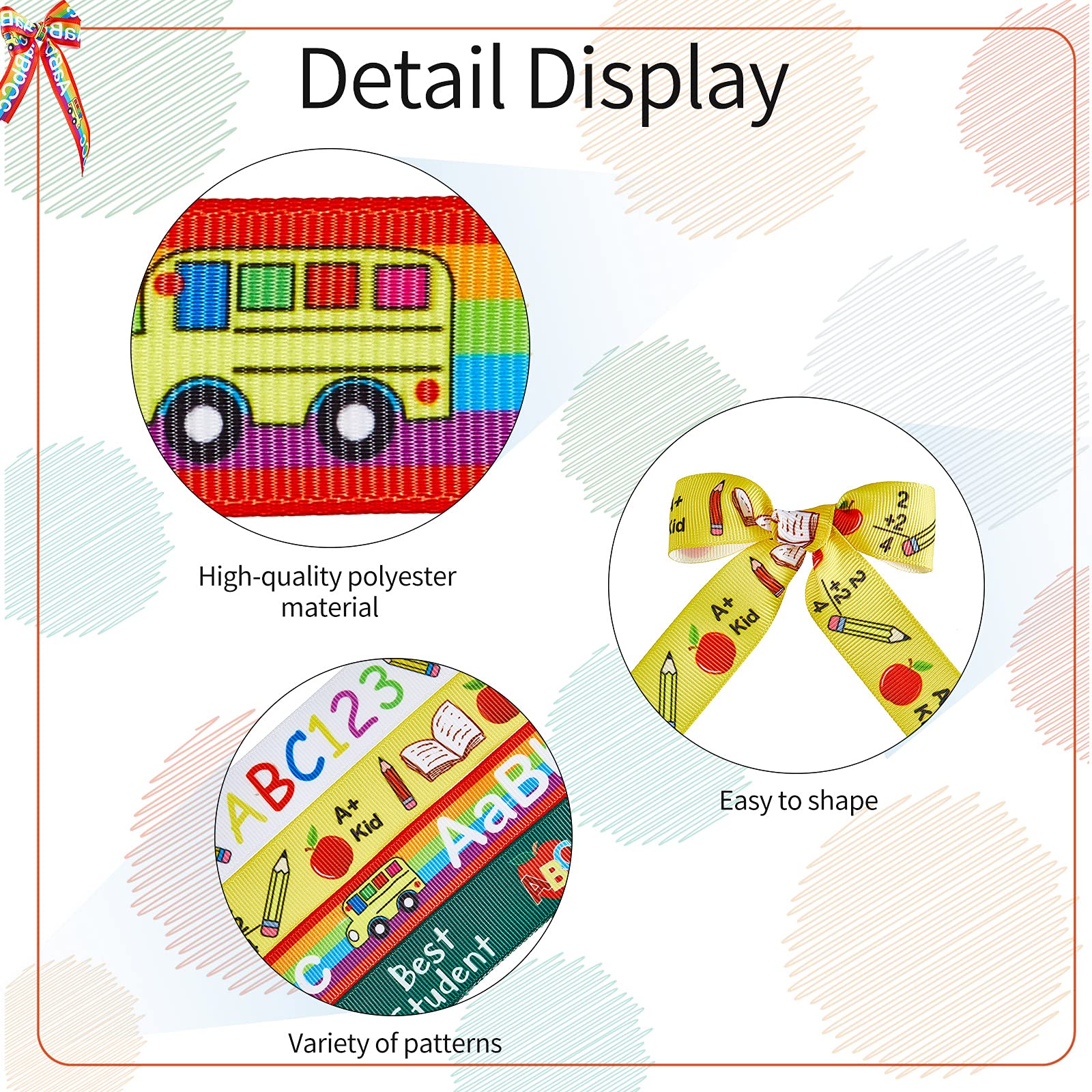 - You will get: the package comes with 4 rolls of back to school grosgrain ribbons in 4 different styles, each roll measures approx. 0.87 inch in width, and 5 yards in length, 20 yards in total, enough for you to use