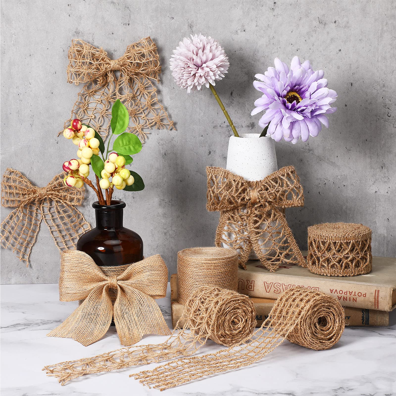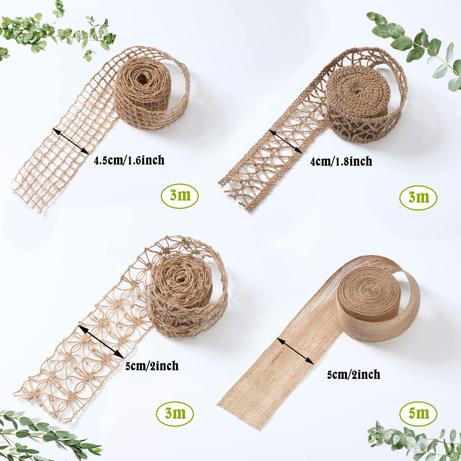 - What you get: 4 rolls of mesh jute burlap ribbons in this package, available in 4 styles, totally 15 m long in this package,sufficient quantity and rich styles to meet your various DIY needs